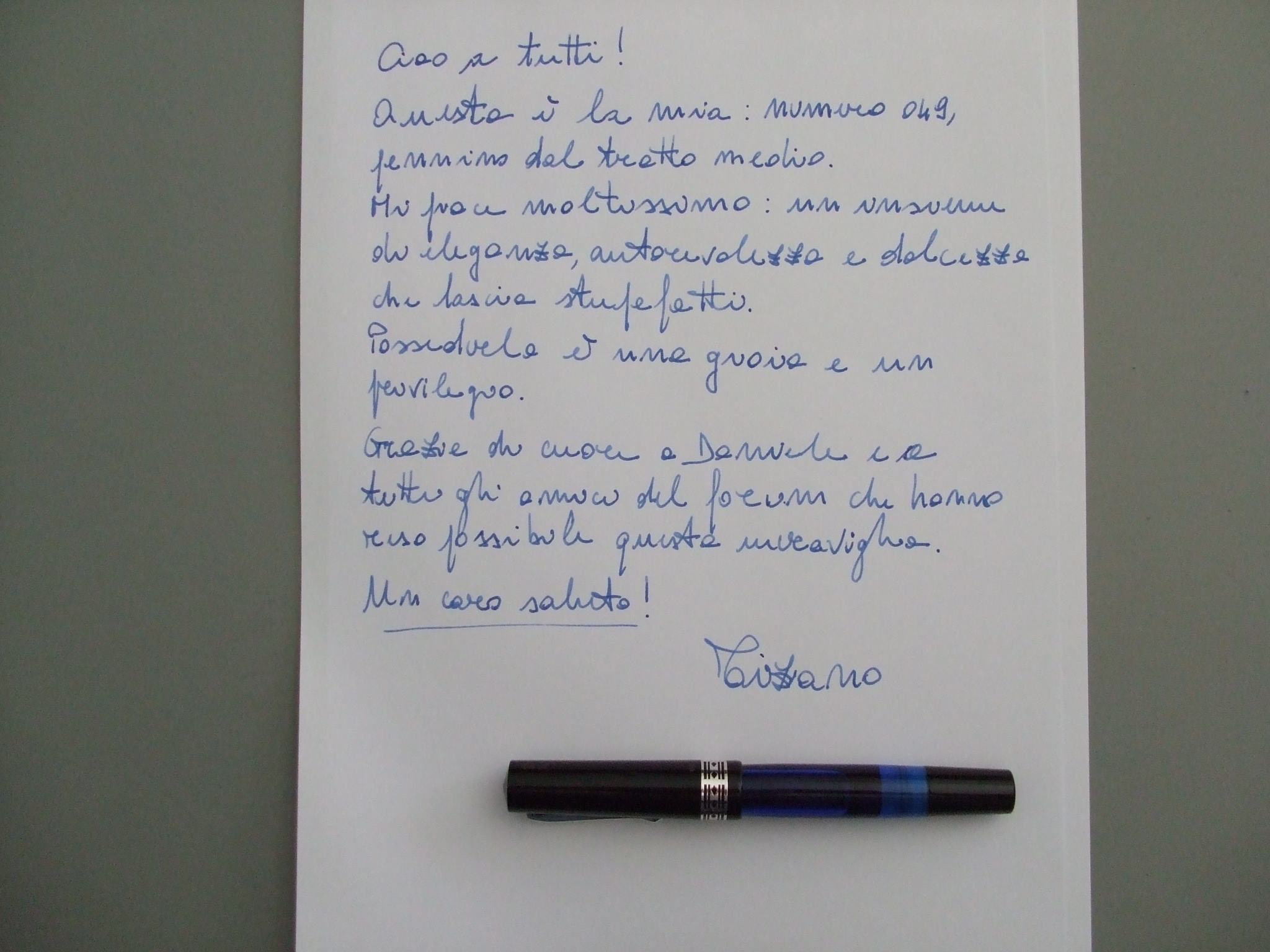 Ecco come scrive. La foto prossimamente.
