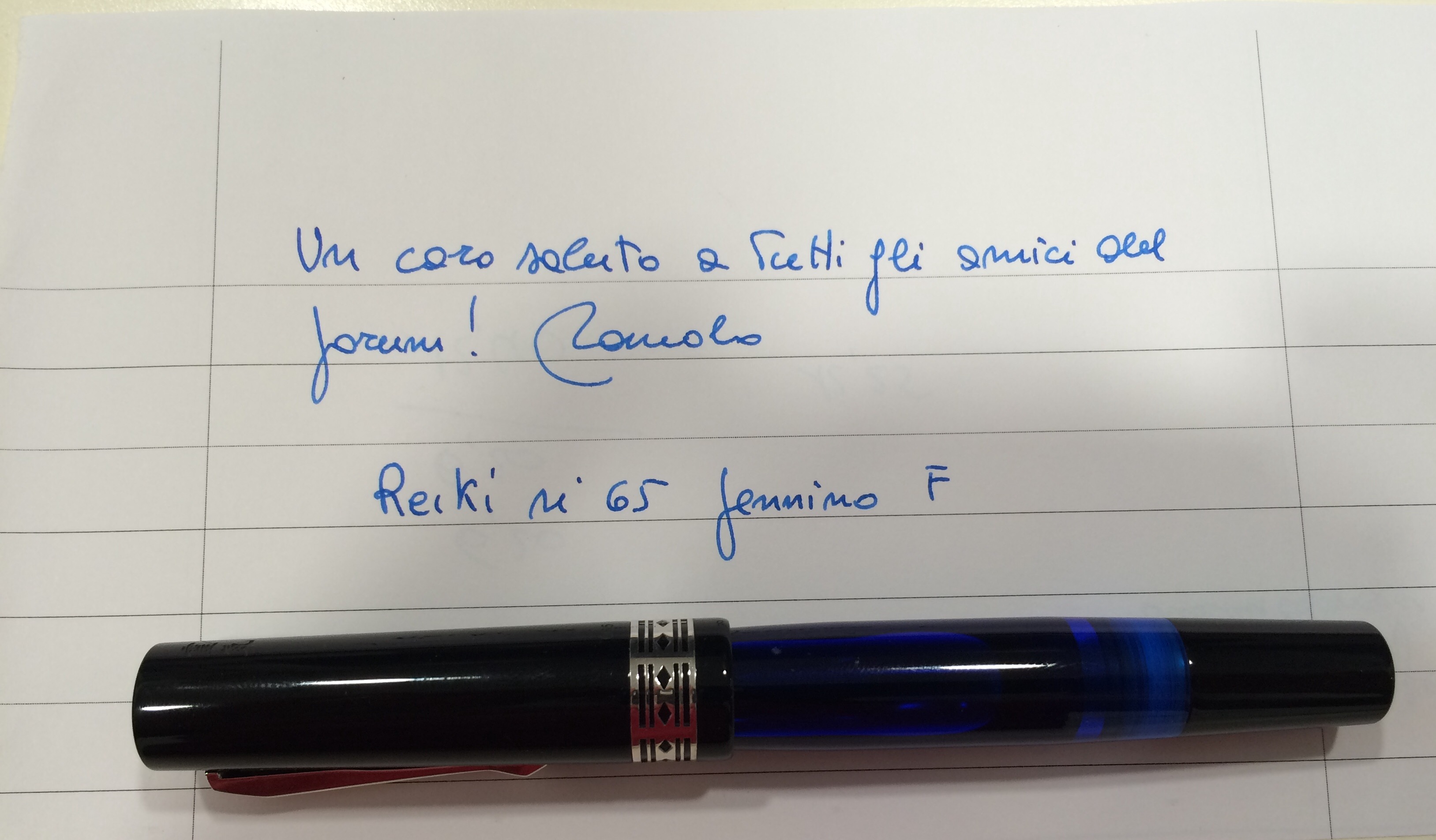 Forse il simbolo del forum non l'avrei messo sul pennino, dove sembra un pò un intruso rispetto allo stile dei due ideogrammi , ma lo avrei visto di più sul fermaglio o sulla sezione.
