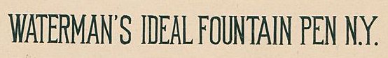 - il Marchio (Trademark) “WATERMAN’S IDEAL FOUNTAIN PEN N.Y.” fu depositato il 5 novembre 1907 (e registrato il 30 gennaio 1908);