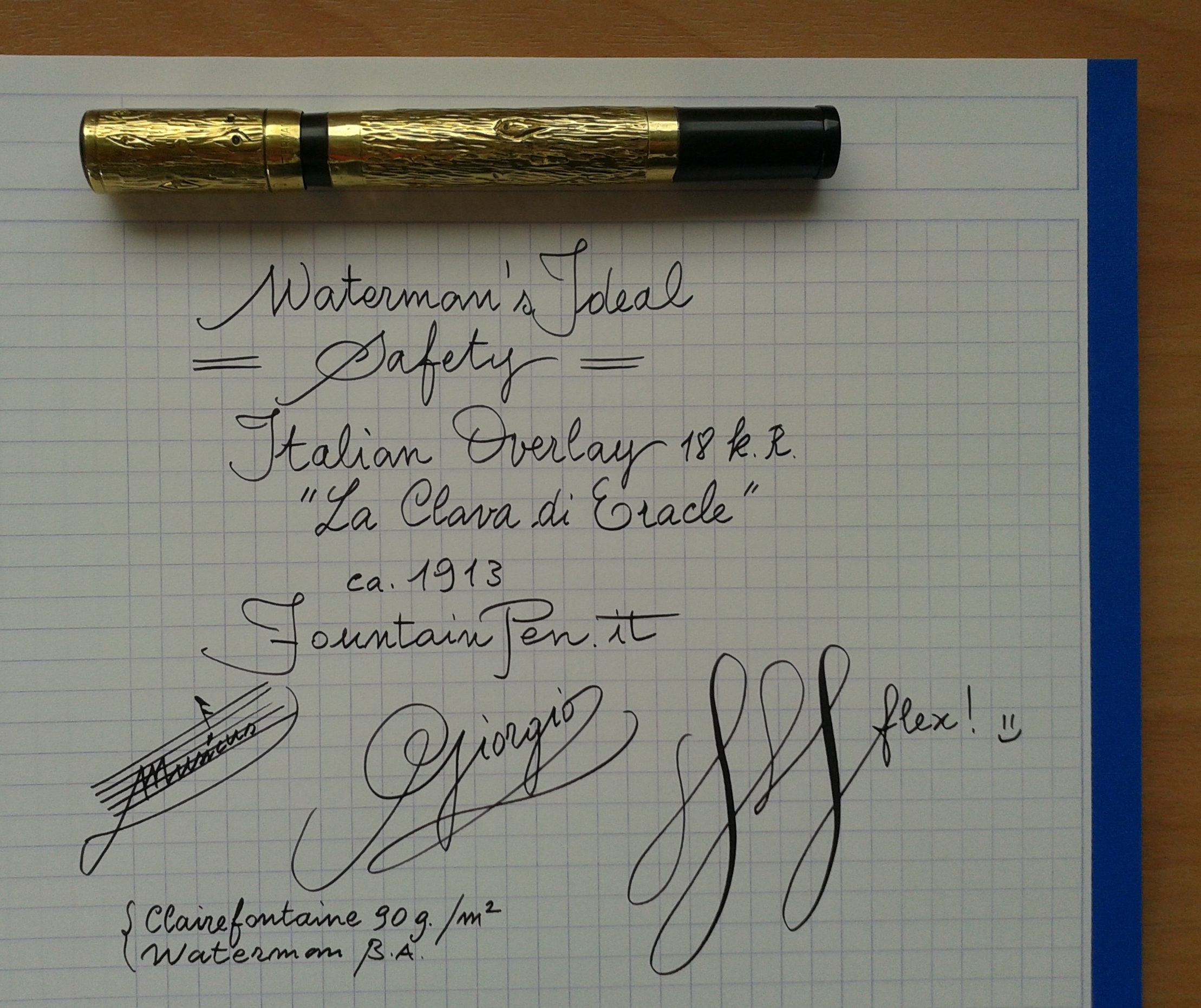 E’ il primo pennino della mia pattuglia di Waterman perennemente in uso (ogni altro Marchio surclassato!) che abbia un tratto più abbondante di F: la scorrevolezza ultraterrena (visto il riferimento mitologico non poteva essere altrimenti) e la libidinosa flessibilità