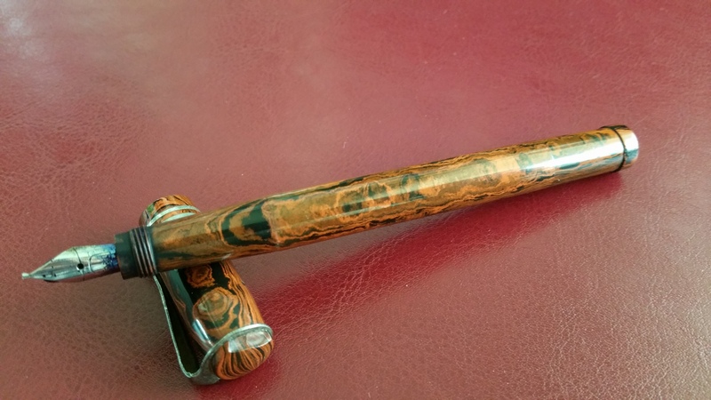 stamattina ad un mercatino mi sono imbattuto in una penna per me singolare: fusto e cappuccio in ebonite che ricordavano alcune Waterman
