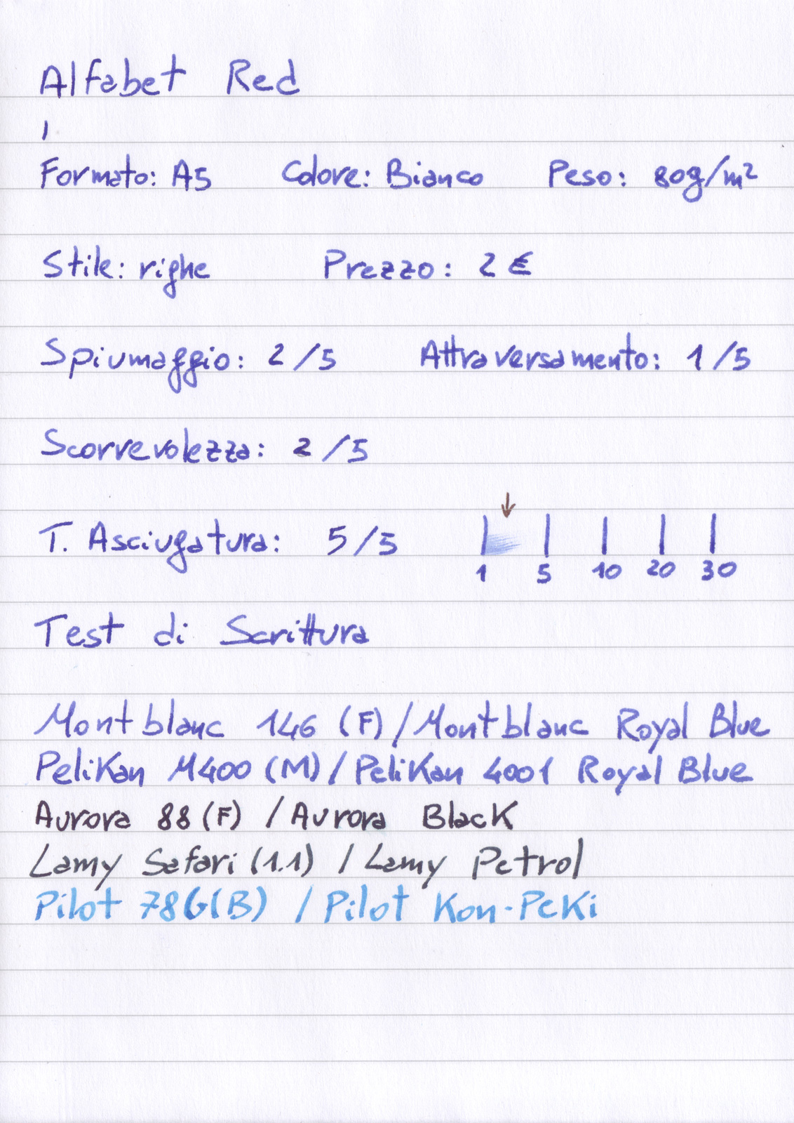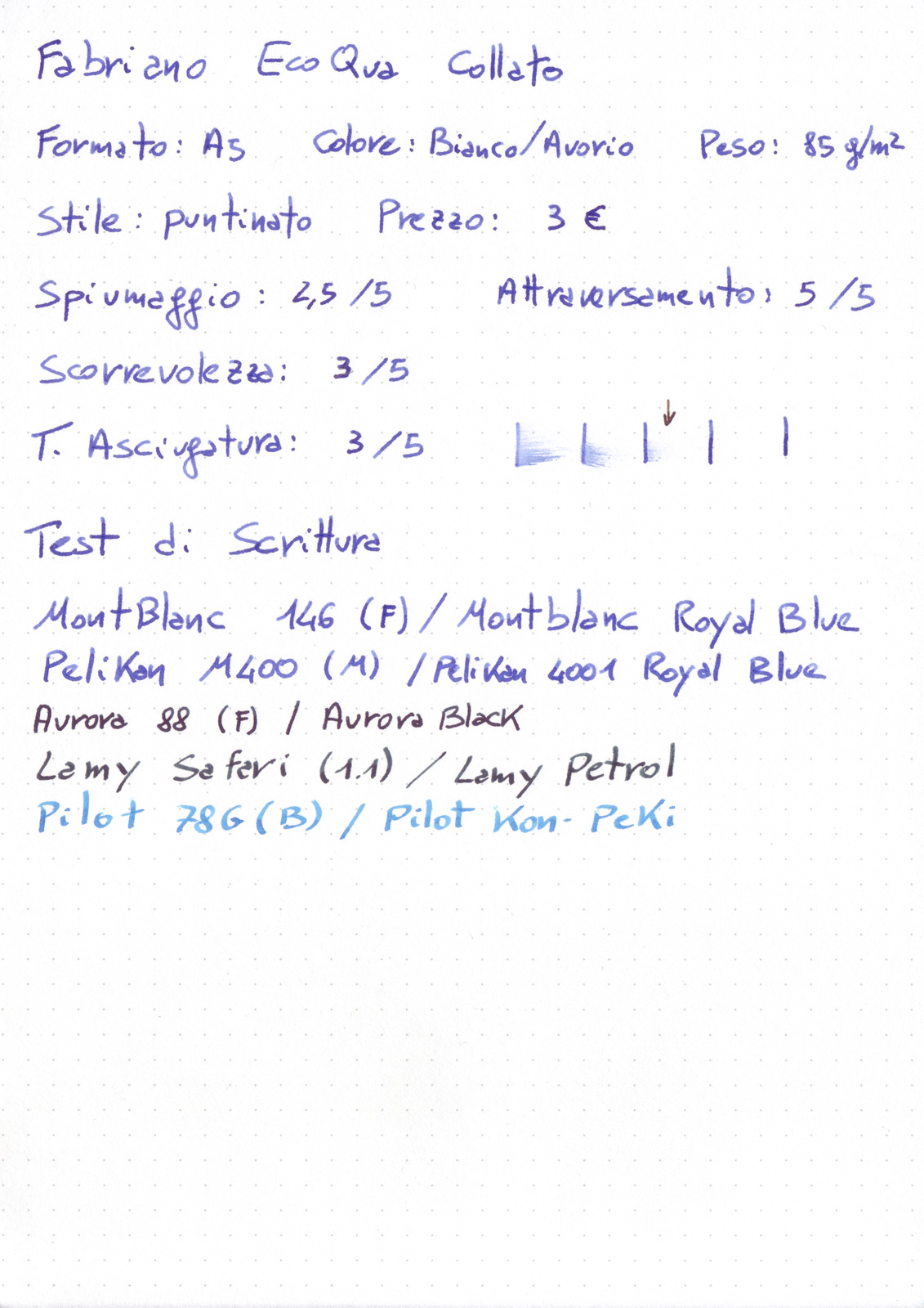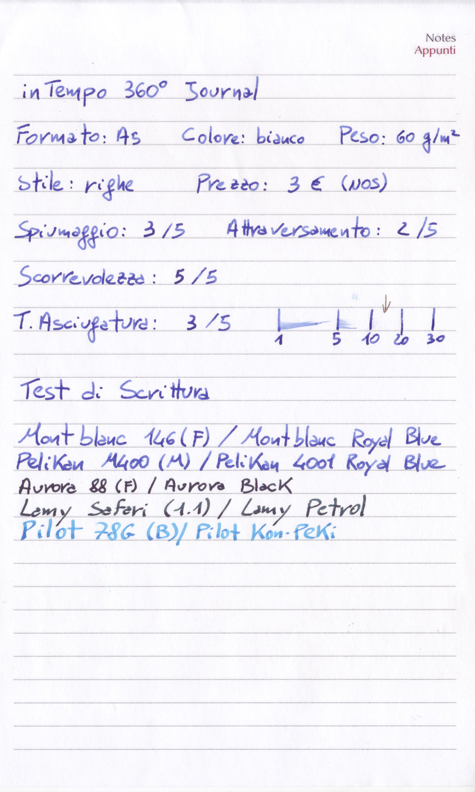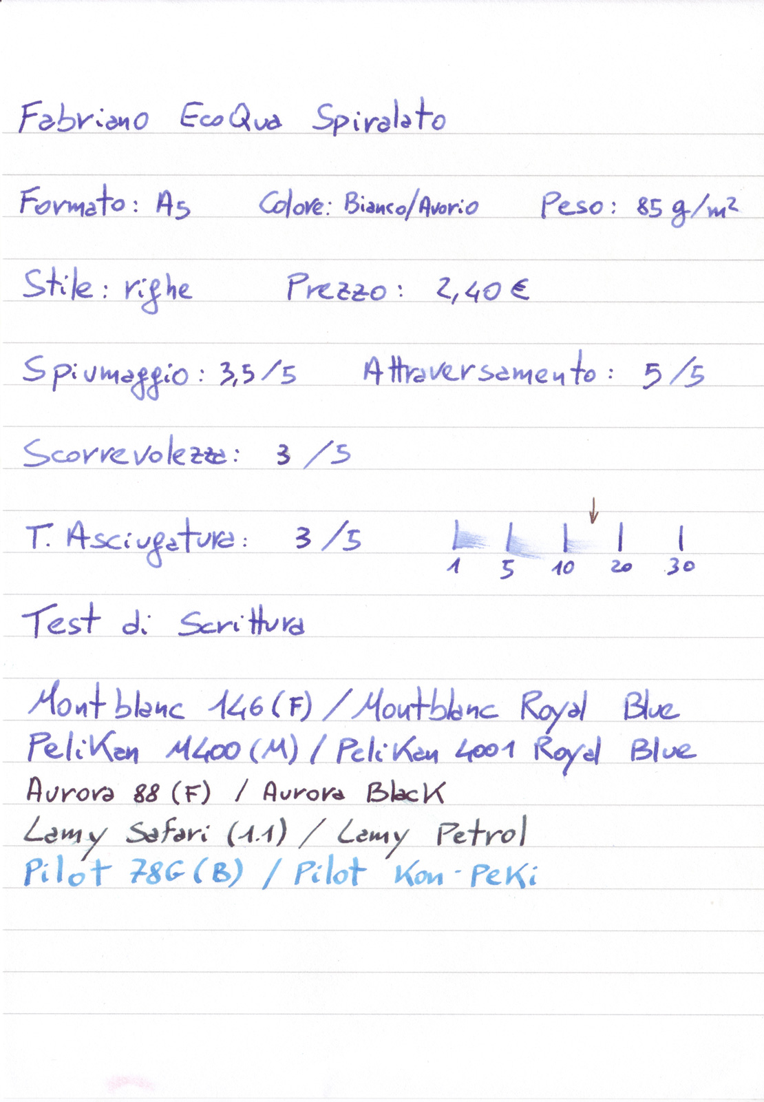 Mi colpisce l'ottimo voto per l attraversamento della moleskine. Quelle che ho provato io erano terribili, ma forse l'inchiostro non è comparabile