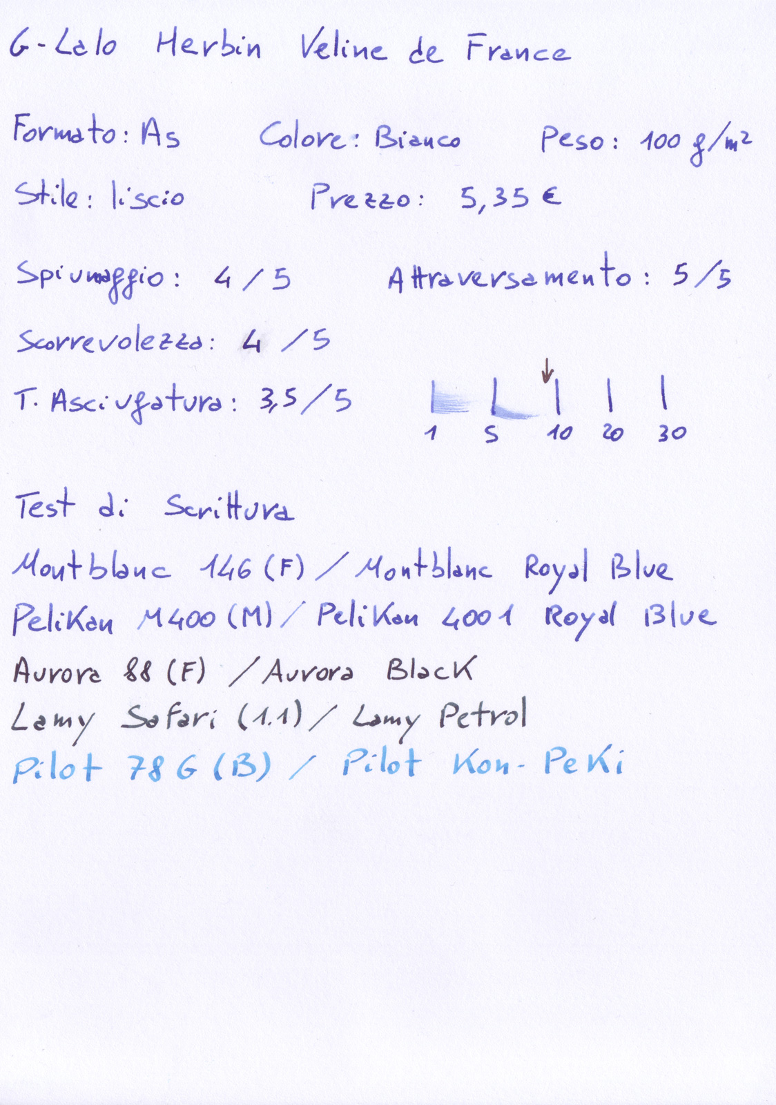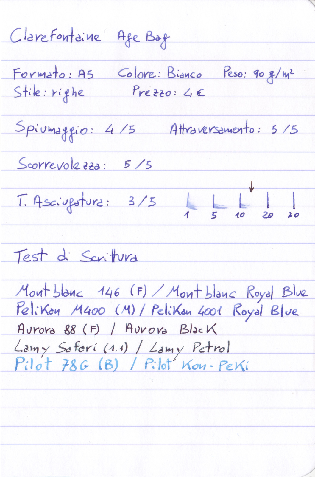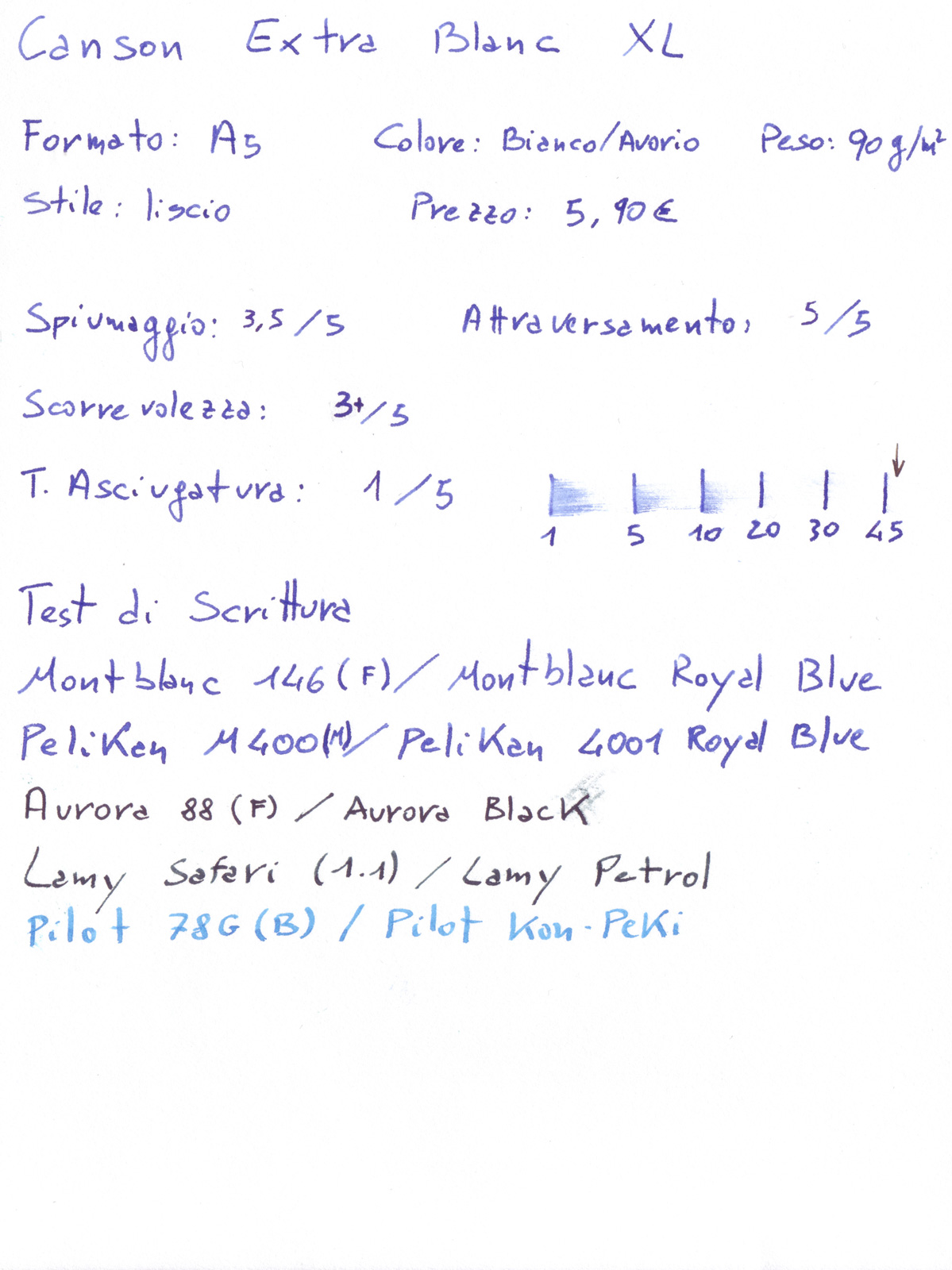 ma se non ti impegnerà troppo, mi sarebbe d'aiuto conoscere le tue sensazioni di scrittura che alla fine sono quelle alle quali si affida ogniuno di noi al di al dei dati "strumentali" come asciugatura, scorrevolezza,.....ecc.