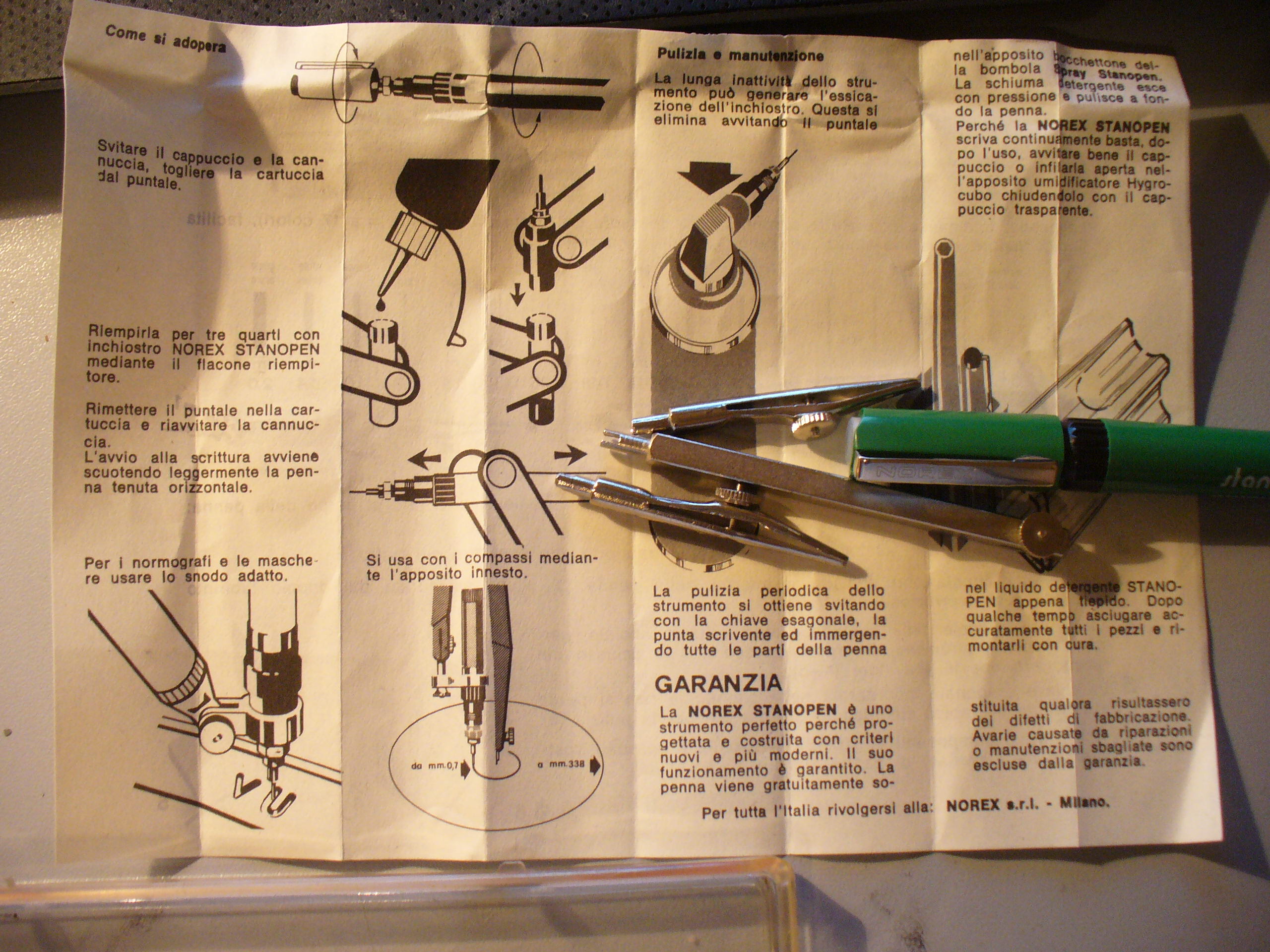 Girovagando per la rete non ho trovato riscontro che la Norex producesse altri materiali oltre le penne, tanto meno compassi.