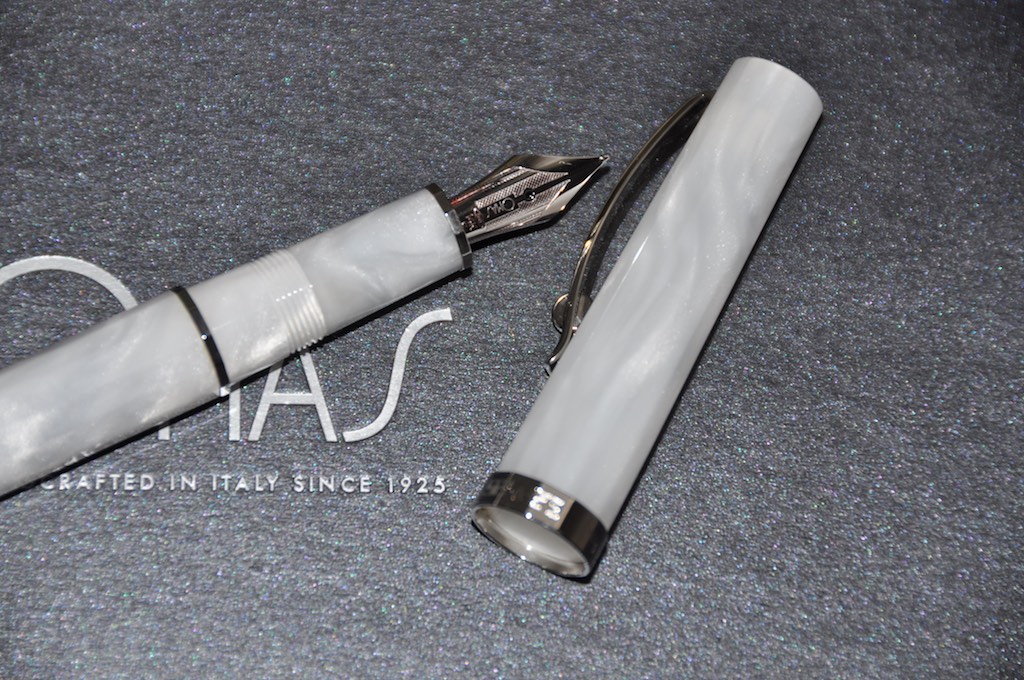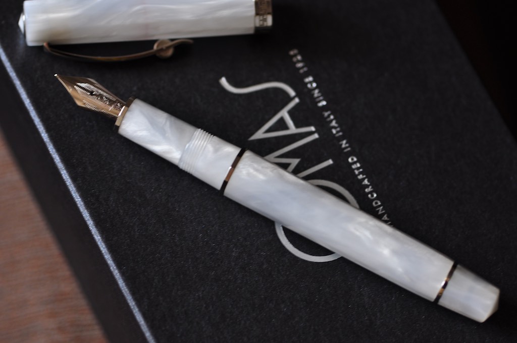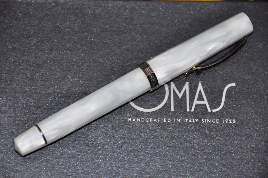 Dalla fattura sembrerebbe appartenere agli ultimi anni di Omas, ma proprio qualche anno fa...Holden ha scritto: ↑sabato 2 settembre 2017, 16:25 Ciao a tutti, in attesa della riapertura dei negozi (a proposito grazie per i consigli su dove cercare vintage) mi sono fatto tentare dal web e mi sono regalato questa penna. Dovrebbe essere una NOS, pennino gold 14k585 misura F, caricamento a converter. Dalle informazioni raccolte, che vi pregherei di correggere se il caso od integrare, dovrebbe risalire a metà degli anni '90, prodotta in resina di cotone con finiture dette high-tech. Le misure: circa cm.13,4 chiusa, 12,4 senza cappuccio. L'ho caricata con Mont Blanc Burgundy red, ed ho ottime impressioni. A voi le foto.