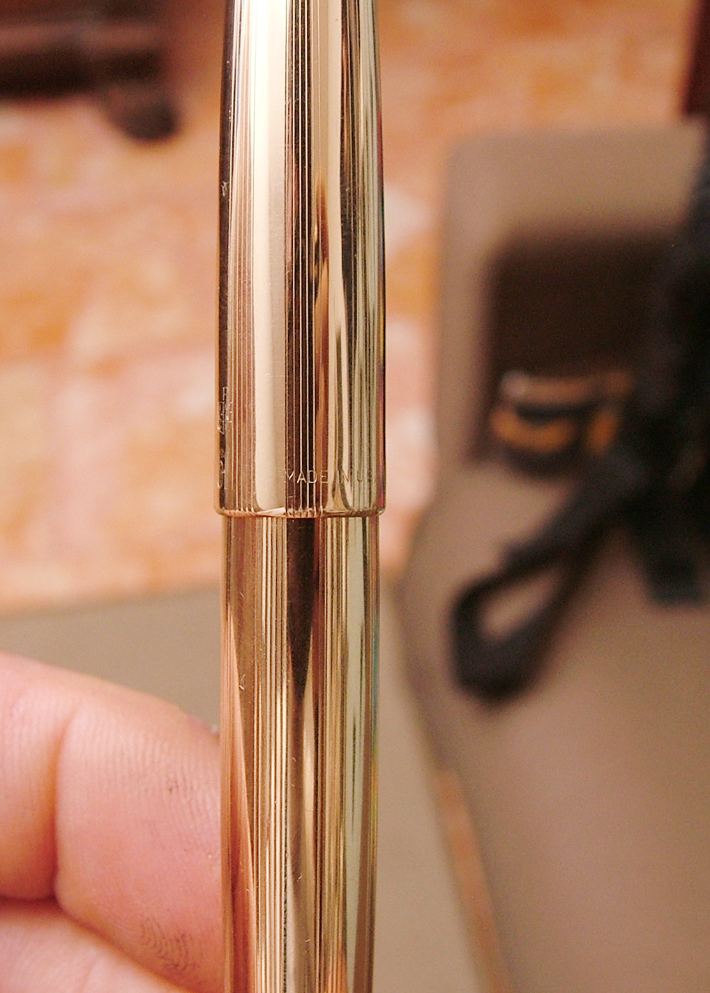 Ora mostro le foto del pennino e delle scritte sul cappuccio , l'unica che non sono riuscito a fotografare è la P maiuscola sopra lo lo scudo con inscritto ,1/10 (laminatura spessa un decimo di millimetro),12 K e GF (gold Filled)
