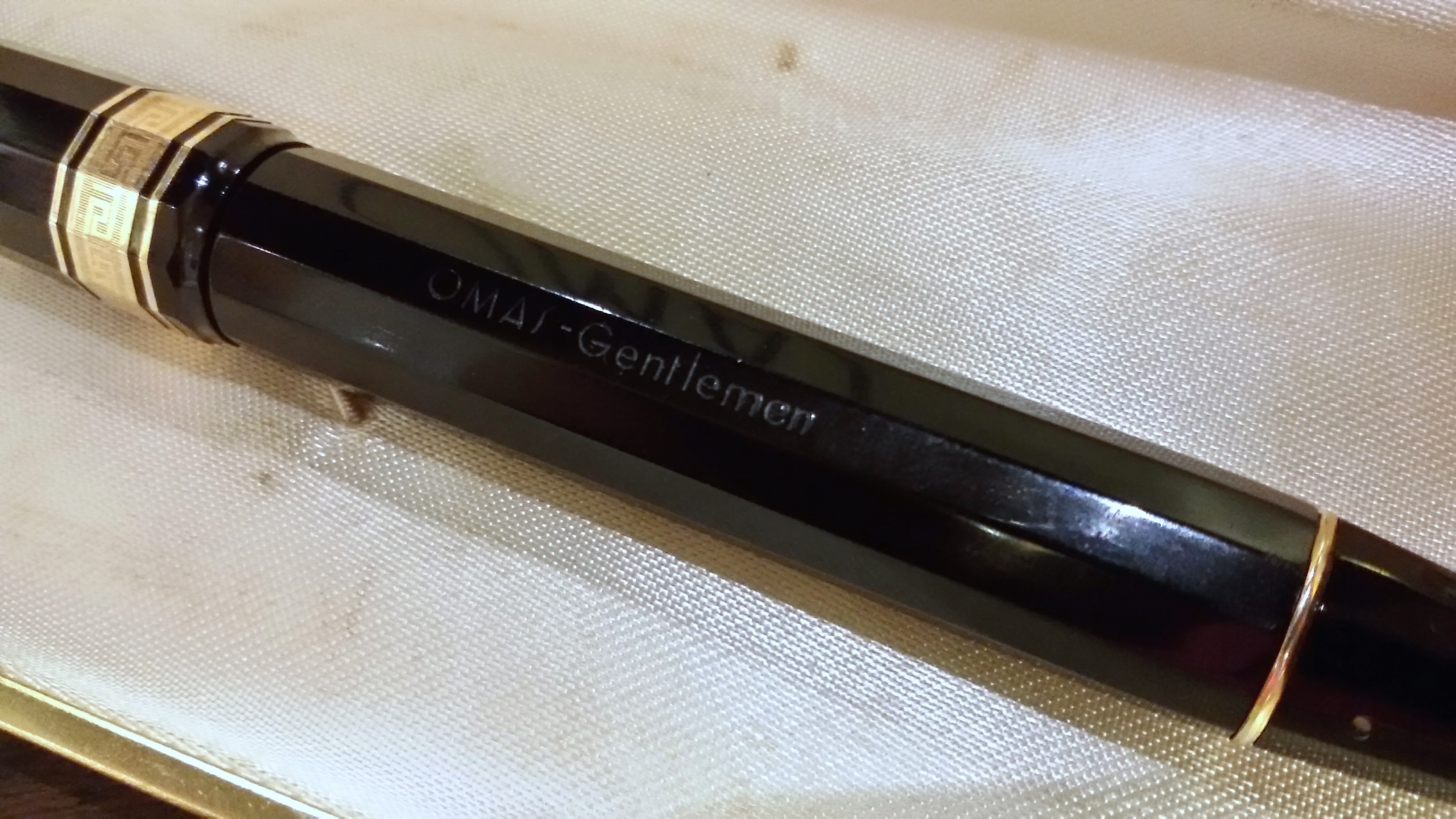 Buongiorno a tutti, oggi voglio presentarvi un recente ritrovamento, devo confessare di essere stato più volte tentato di acquistarla tramite canali ufficiali ma l' attesa mi ha ripagato...Trovo questa penna in celluloide dei primi anni sessanta davvero meravigliosa, il pennino Omas Extra Lucens garantisce una scrittura fantastica e un flusso sempre preciso e costante. Dopo averle fatto un bel bagnetto anche la guarnizione interna che penso sia ancora di quelle in sughero aspira perfettamente l' inchiostro. Le dimensioni sono da penna importante e calza perfettamente in mano. Non è da confondere con la successiva Omas Gentleman che non è più in celluloide.