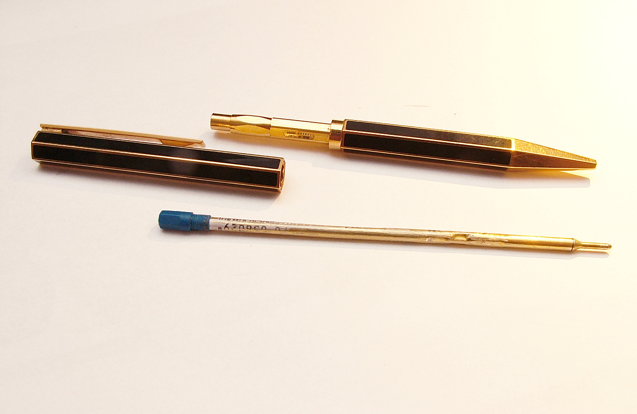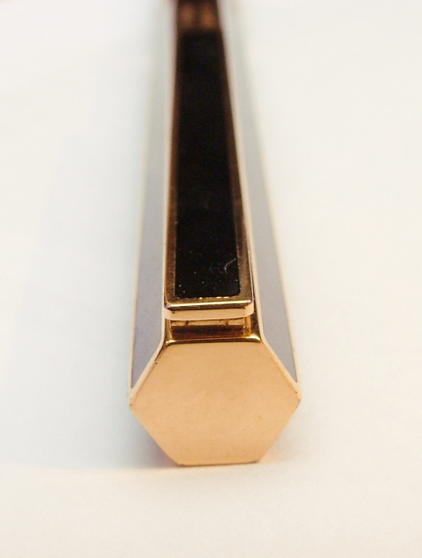 Ho preso questa biro esagonale di ottima fattura in lacca e con profili laminati oro.