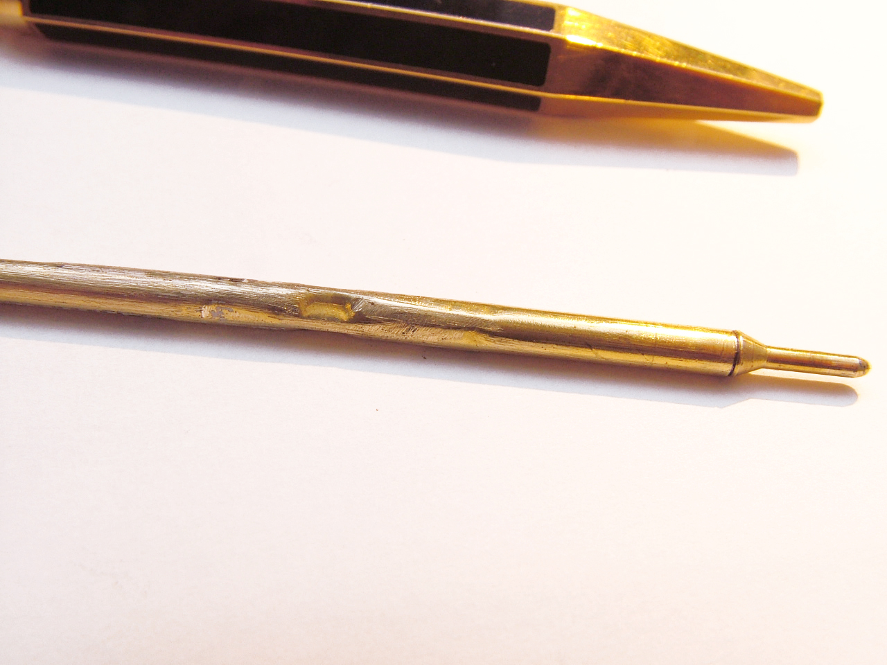 La penna è fatta molto bene il meccanismo è tipo cross, ma porta la punta piccola il refil Pelikan classico, quello sottile va bene, ma deve essere dritto senza il fermo della molla, per adattarlo ho dovuto arrotondarlo con colpi di martelletto e qualche altro di lima.