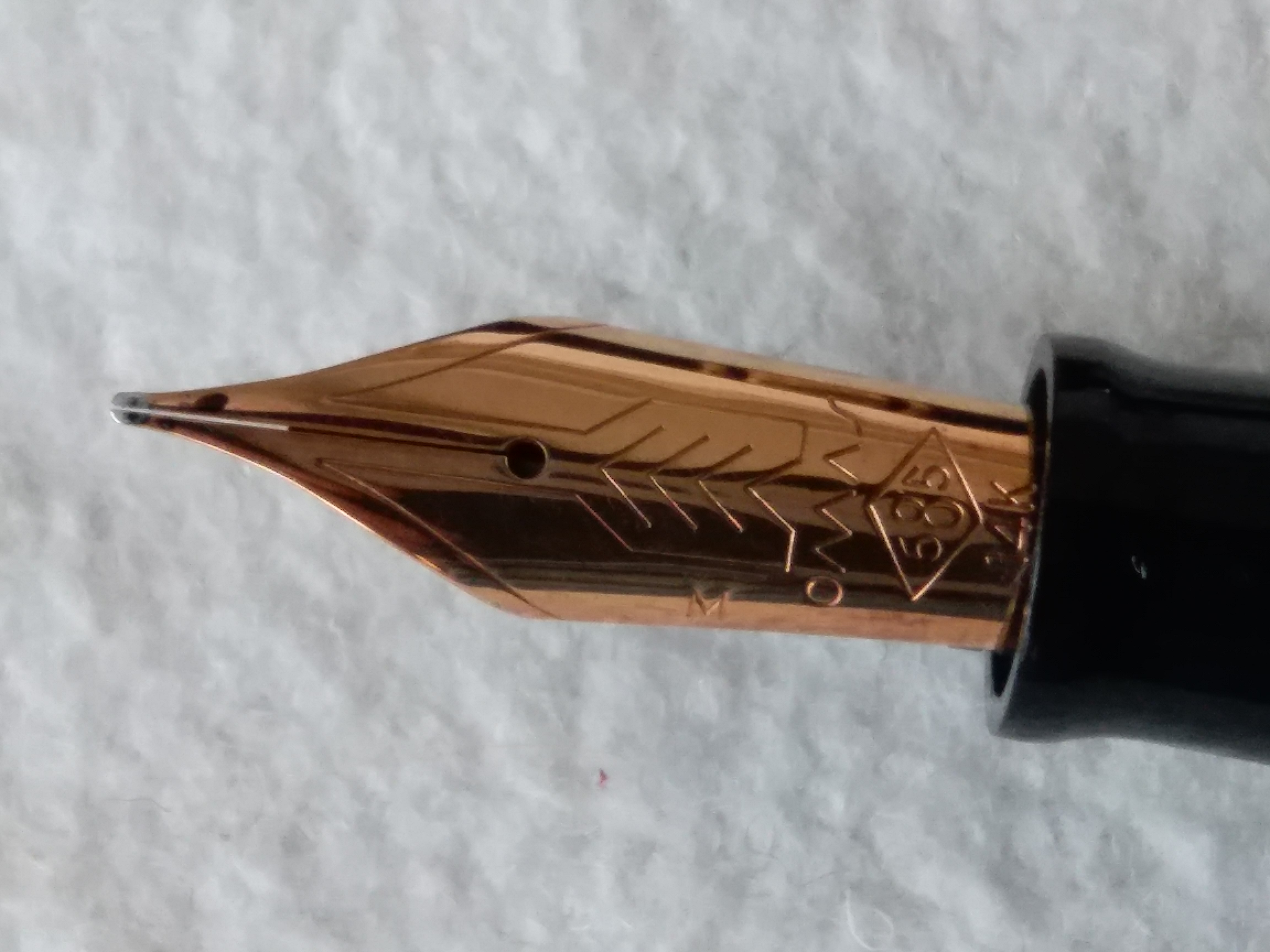 Da pochi giorni felice possessore di una Omas (la mia prima), mi piacerebbe avere qualche informazione in più. È una classica faccettata nera, misura 557, marchiata "Raiuno". Sul fondello si notano due scalfitture, come se si fosse voluto coprire i buchi del pernetto che, mi pare di aver capito, era tipico della Omas in celluloide (ma forse mi voglio illudere io). Il marchio sul corpo della penna è il primo della Rai, in uso dal 1980 al 2000. Posso sperare che la mia sia un fondo di magazzino reciclato per motivi pubblicitari o aziendali? Caricamento a stantuffo, pennino oro 585 monocolore, piuttosto imponente, ma lungo e affusolato. Flusso abbondante e tratto piuttosto largo. Appena possibile, seguiranno foto. Grazie a chi vorrà rispondermi.