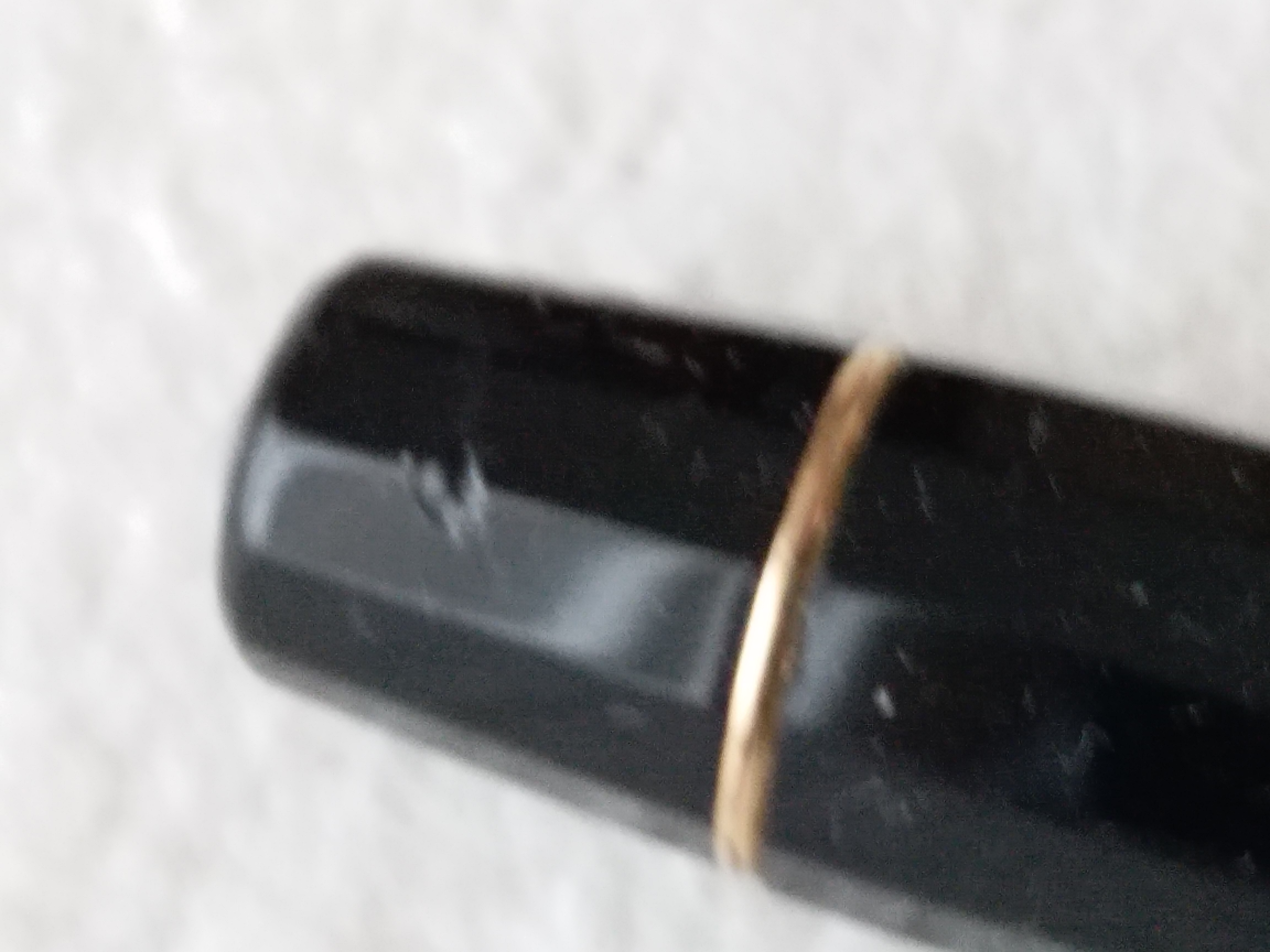 Grazie mille per la risposta veloce. Sì, in effetti i rebbi sono un po' troppo aperti. Mi spiace un po' per il materiale, confesso. Per quanto riguarda il fondello, a parte i due segni che si corrispondono (nel senso che sono diametralmente opposti), quelli che si vedono non sono scalfitture, ma pelucchi lasciati dal mollettone del tavolo su cui ho appoggiato la penna...