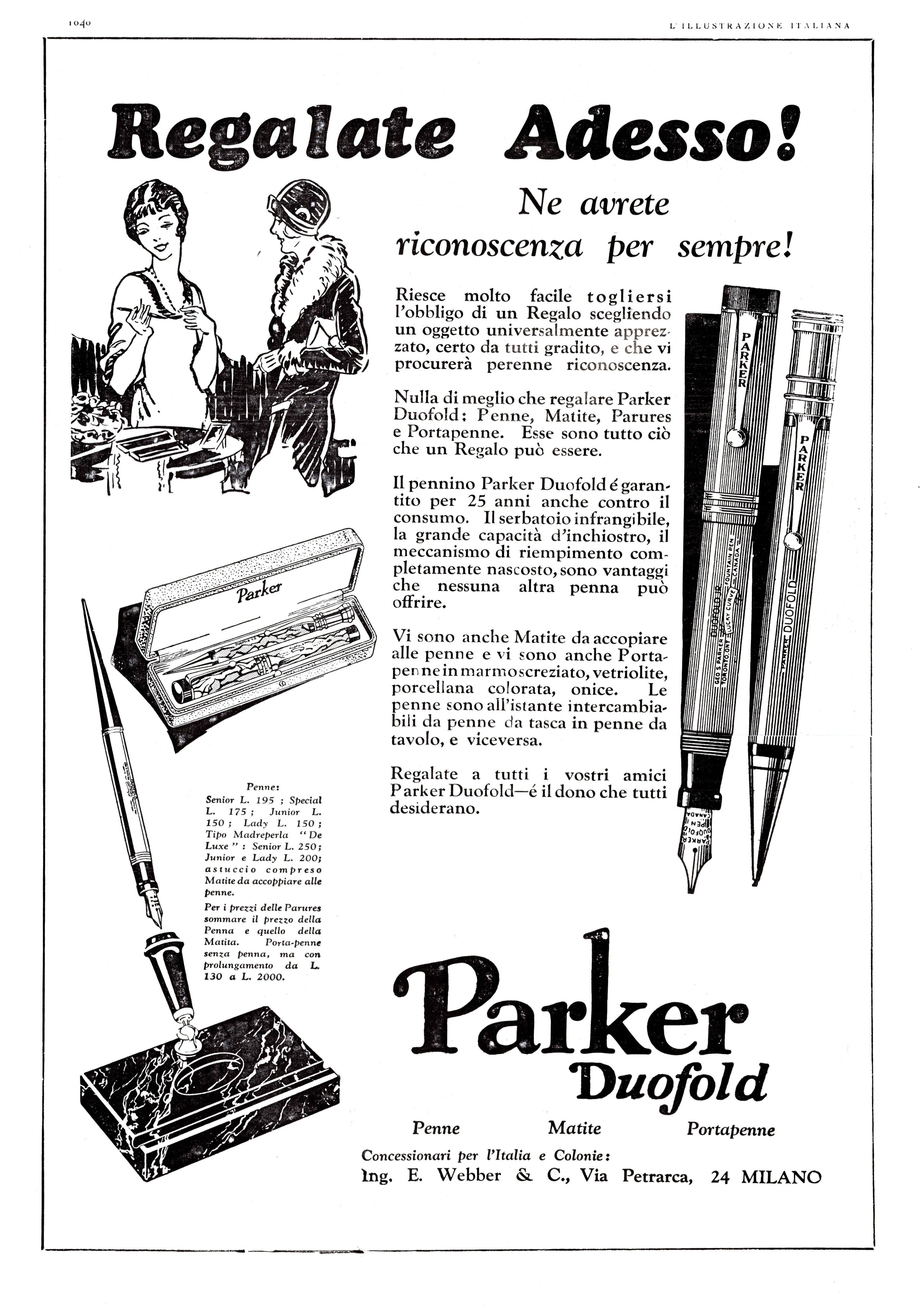 PARKER - Duofold tipo Madreperla De Luxe set - 1929-12-22. L'Illustrazione Italiana - Anno LVI - N.51 - pag.1040