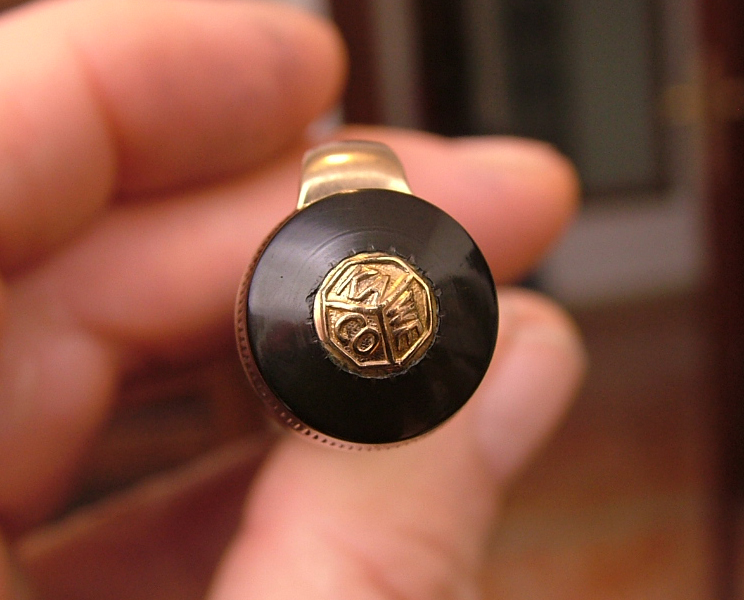 Sul fondello superiore del cappuccio in bella vista placcato in oro il simbolo della casa.