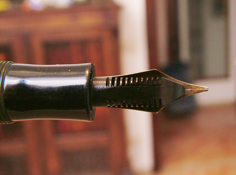 Pennino in oro 585 (14 C.) dalle dimensioni generose, misura M. Probabilmente in oro perchè anteguerra.