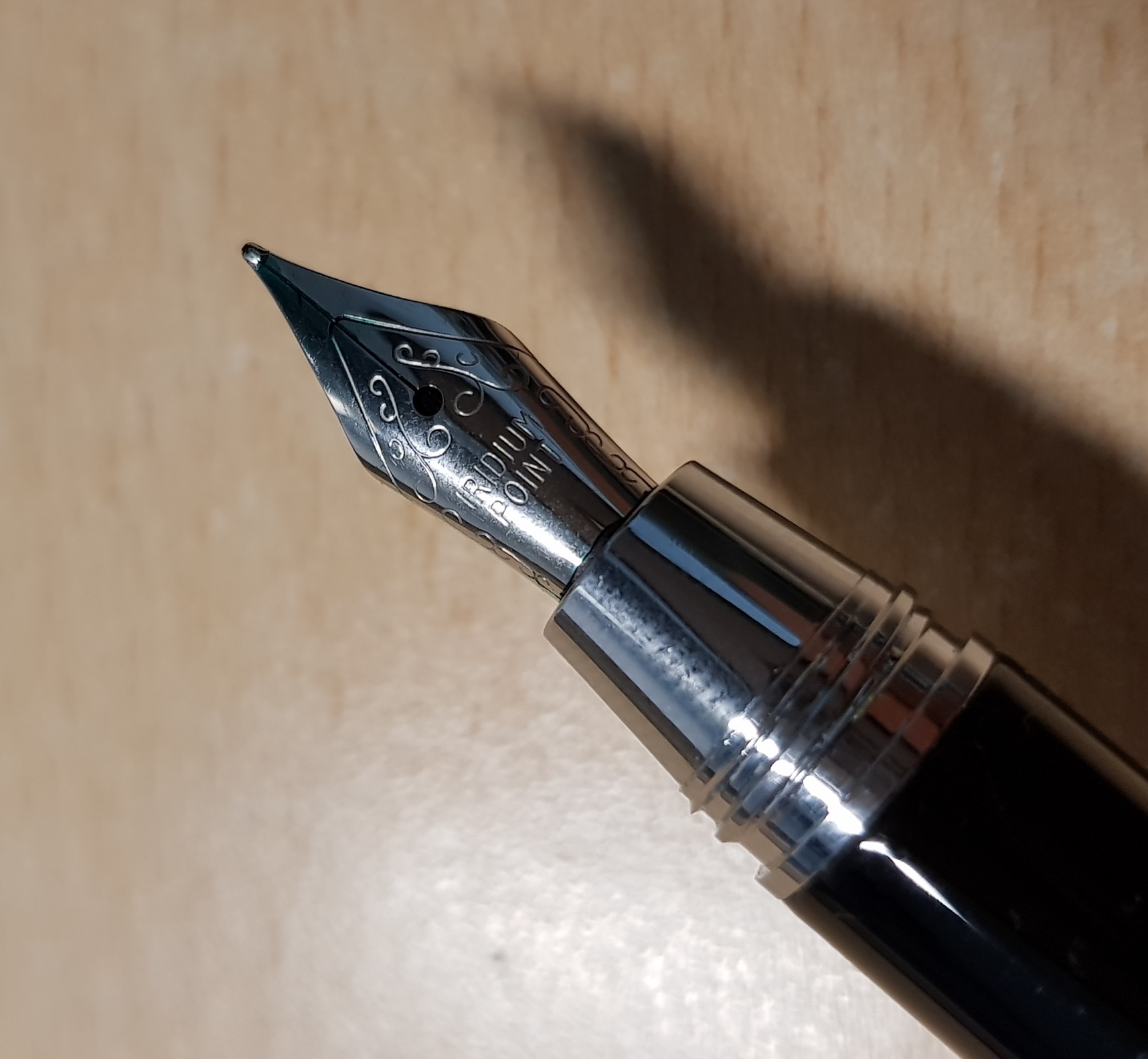 La penna è venduta con un pennino in acciaio decisamente rigido con la solita punta iridium point ed è disponibile solo nel tratto medio.