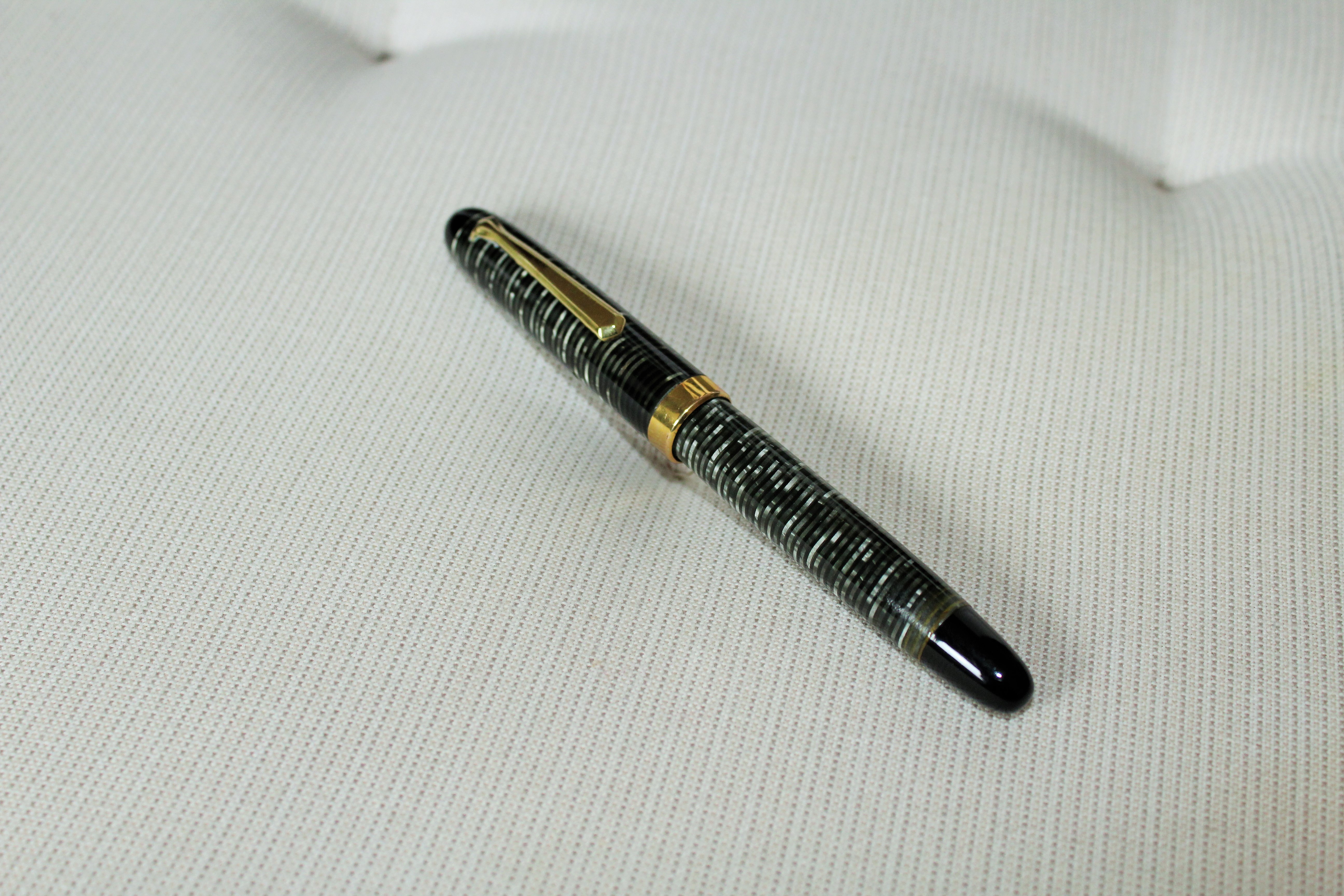 Eccellenti le condizioni di celluloide e dorature, caricamento a pulsante, pennino originale in oro 14k fine.