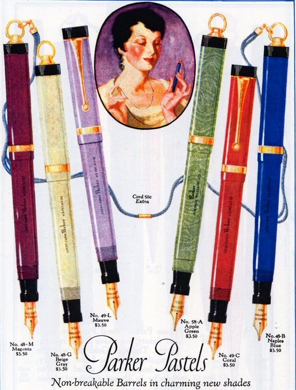 Ecco una pubblicità Parker che mostra la nuova gamma di colori "Pastel"...