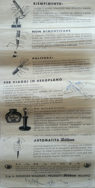 Buongiorno, oggi vi presento una recente acquisizione, una Pelikan 140 nera, mai utilizzata, con il suo bell' astuccio e istruzioni. Quando trovo le penne accompagnate dall' astuccio e istruzioni sono molto contento in quanto stravedo per quest' ultimi "accessori". La penna aveva il pistone quasi completamente estratto, è bastato estrarlo completamente, dare un velo di grasso al silicone alla guarnizione e riinserire il tutto; il pennino è un Pelikan Kugel extra fine, molto particolare nella sua forma e meraviglioso nella scrittura.
