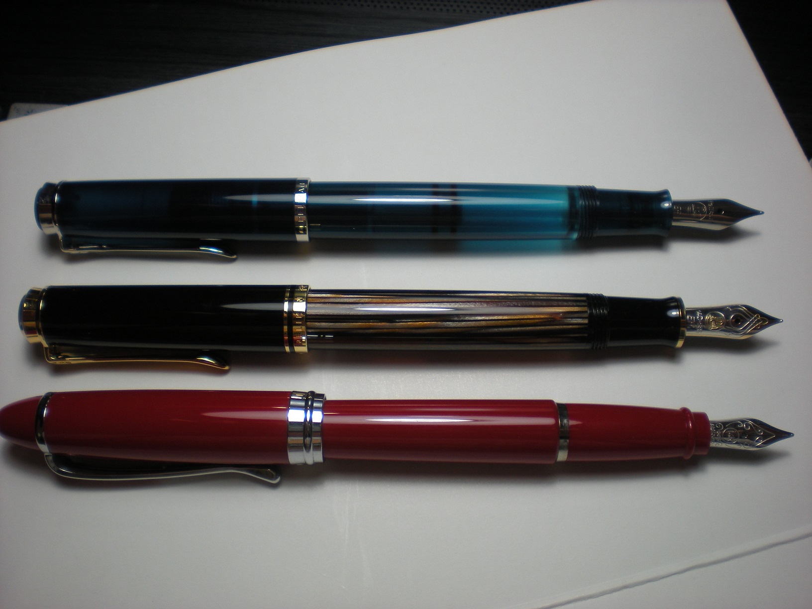 questo è il confronto fra una Pelikan M200, una M400 e una Aurora Ypsilon De Luxe