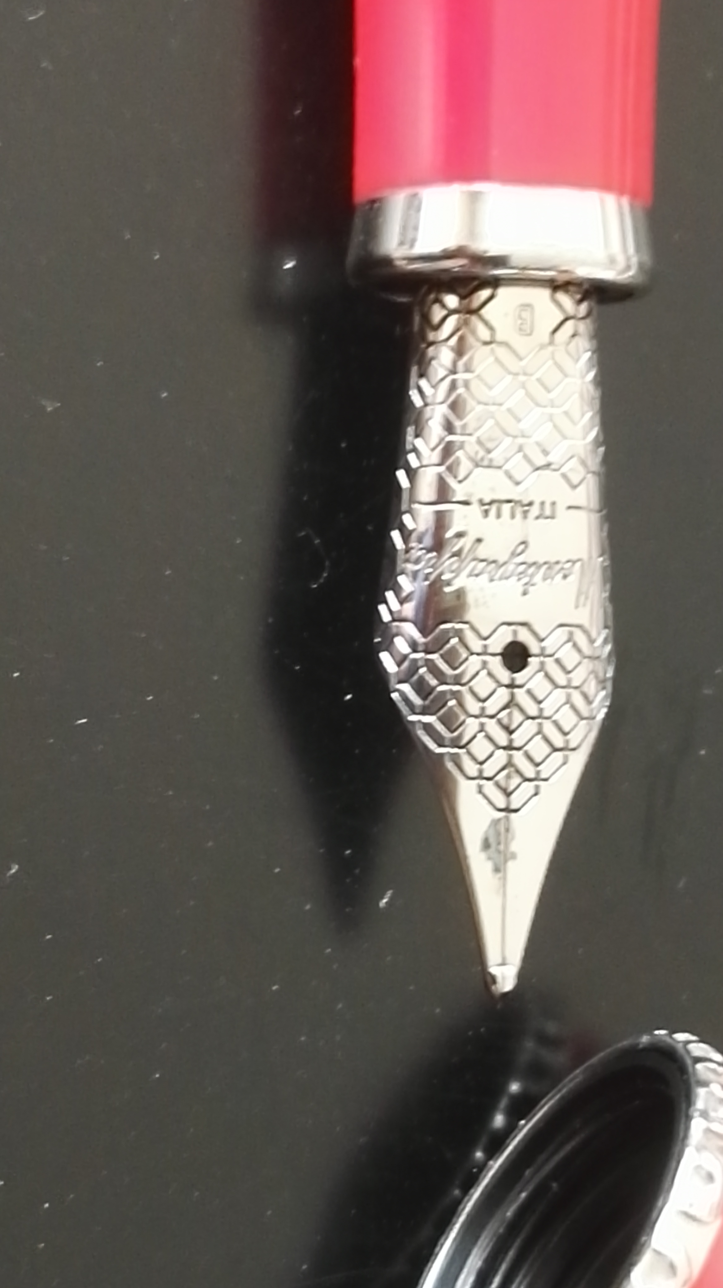 Quella col pennino in oro non l'ho provata, ma il pennino in oro 18 kt ce l'ho sulla nero una mod. grande. ed è spettacolare