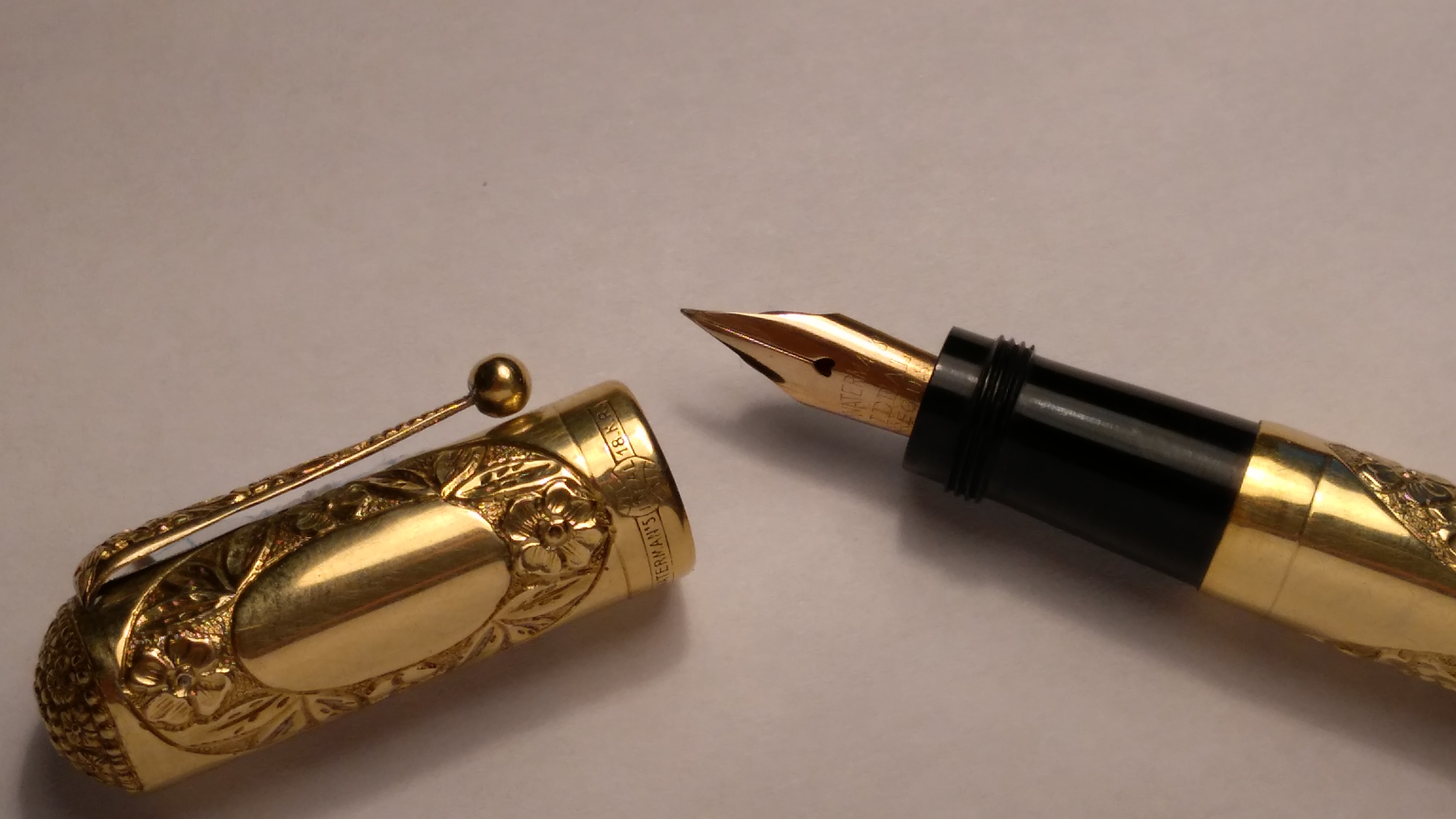 Sembrerebbe una penna (bella, peraltro) cosiddetta "rientrante". In fondo al fusto della penna dovresti trovare una parte mobile, che si può girare. Di solito girando in senso antiorario il pennino rientra nel fusto, consentendo anche la chiusura del cappuccio. Girando in senso orario il pennino fuoriesce di nuovo.
