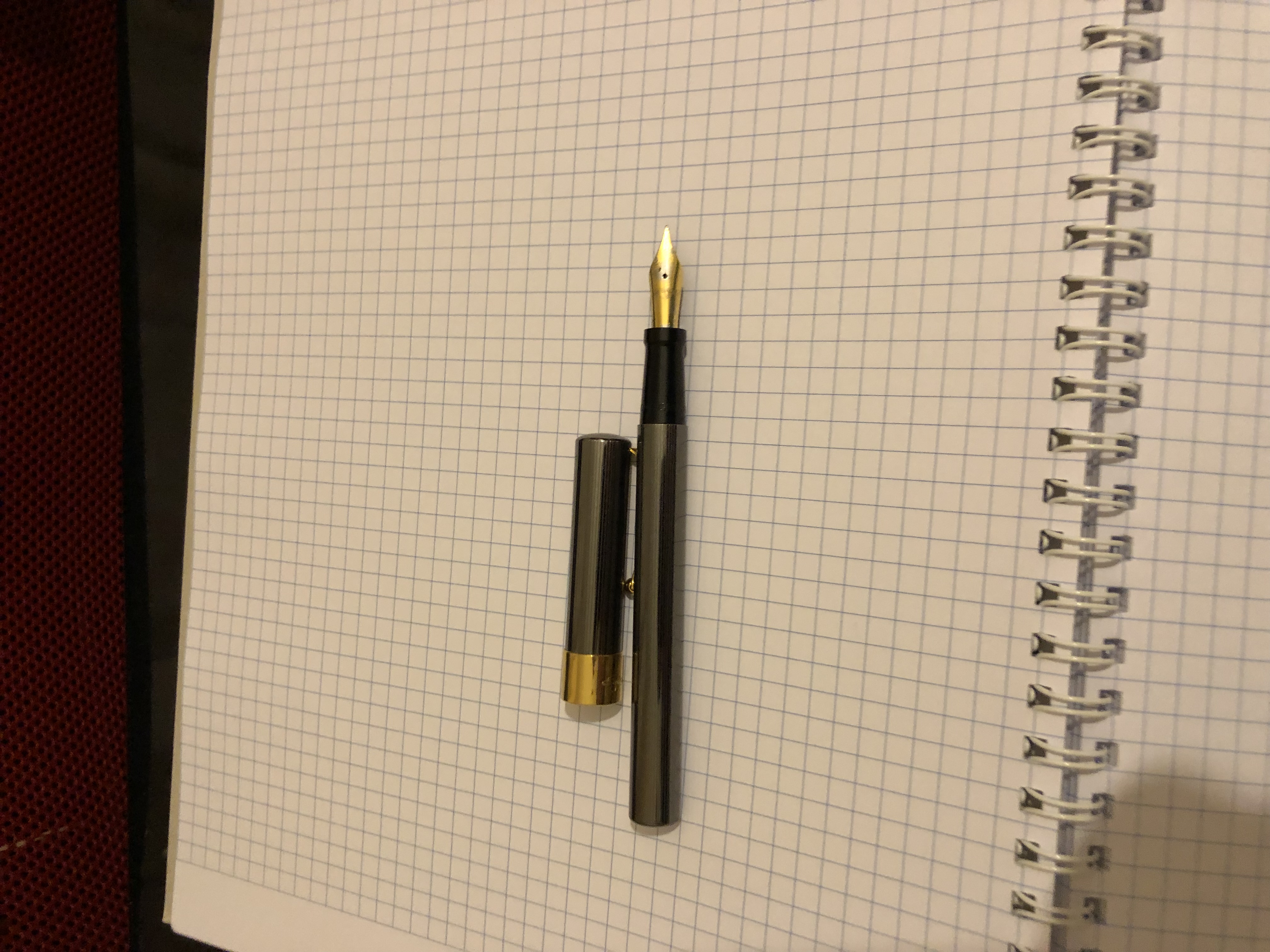 La penna era incrostata di brutto, dopo un po’ di lavaggi ha ricominciato a scrivere. Nel complesso non si comporta male, ha un flusso non molto abbondante, un tratto fine e il pennino leggermente flessibile (in acciaio) che permette una minima variazione di tratto. Se lasciata inutilizzata per molte ore ha qualche esitazione nella ripartenza ma niente di drammatico. Penso che abbia bisogno di un altro po’ di rodaggio, forse un altro po’ di ammollo e magari un inchiostro un po’ più fluido tipo Aurora ...