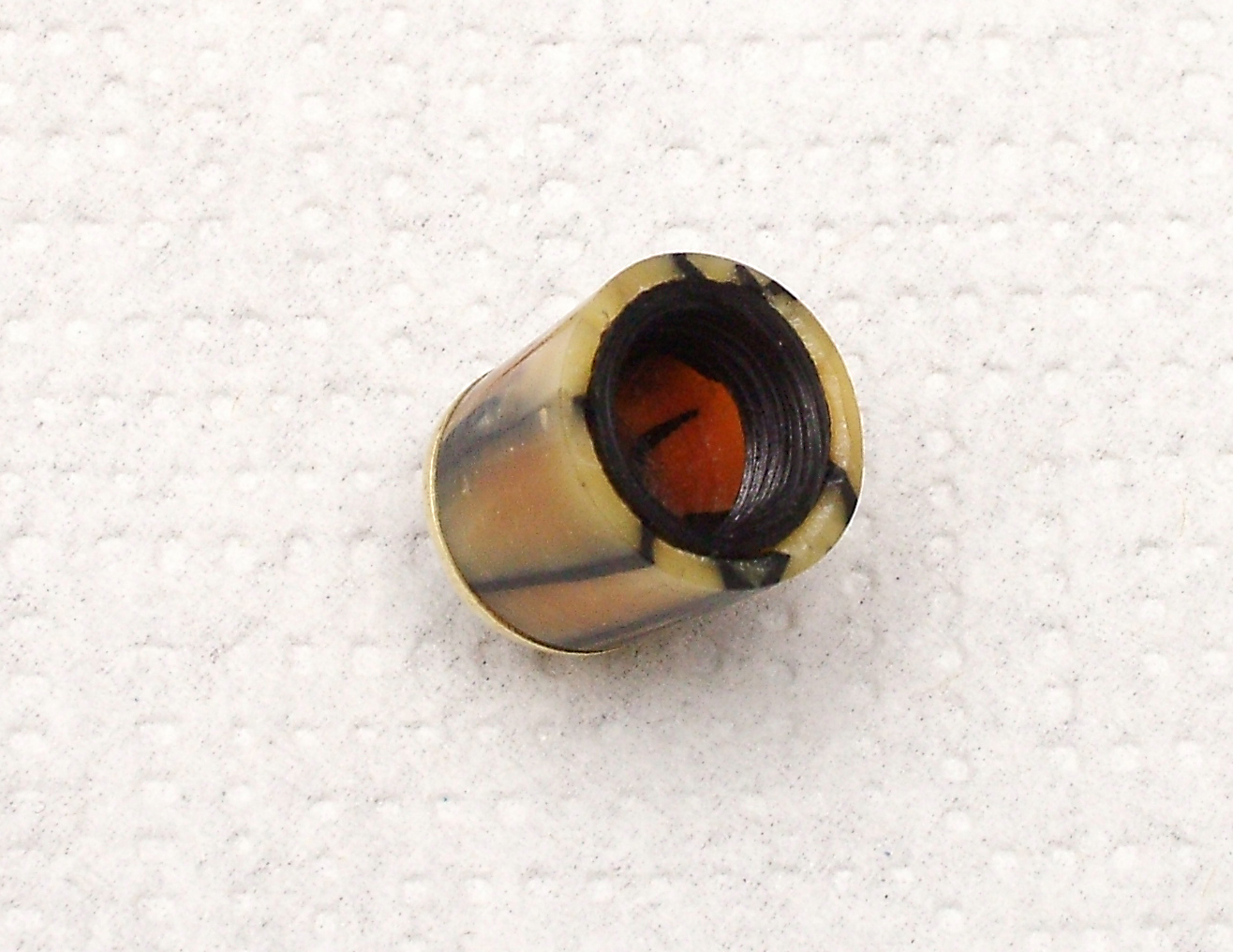 Complimenti! Se non hai usato attrezzi meccanici hai una manualità davvero buona. Era difficile sia mantenere un sufficiente spessore delle pareti del fondello e del pezzo filettato innestato tale da non indebolirli o spaccarli.