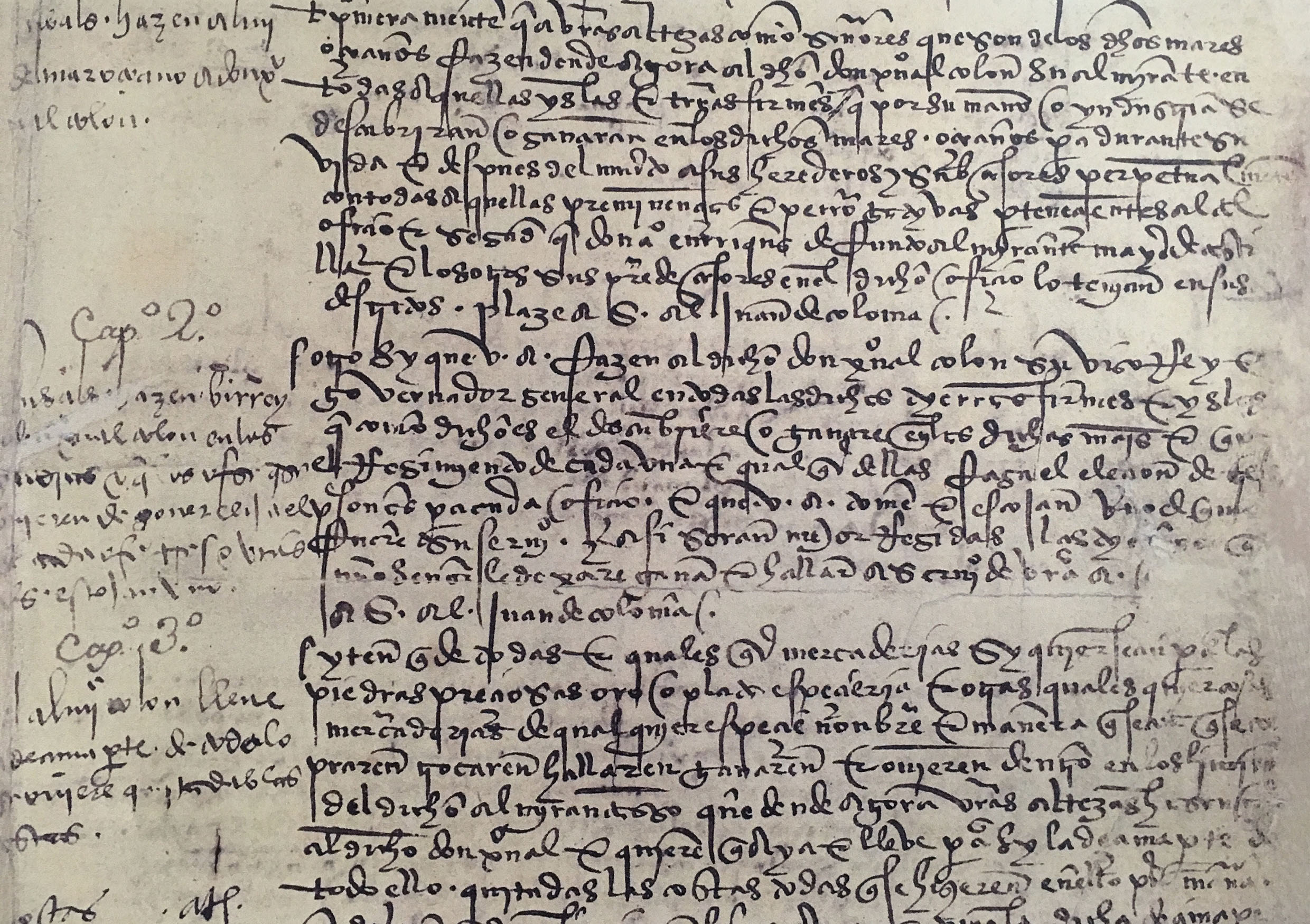 Con mia figlia Carlotta abbiamo recentemente ripreso, per un paio di capitoli della sua tesi, alcuni avvenimenti chiave della storia di Spagna sul finire del XV secolo, all’epoca dei cosiddetti Re Cattolici. Tra i numerosi elementi che in un modo o nell’altro finirono per plasmare in larga misura la forma del mondo così come la conosciamo oggi, vi fu certamente la decisione di Fernando e Isabella di sponsorizzare il viaggio di scoperta di Cristoforo Colombo, con il quale il navigatore italiano sperava di aprire una nuova via verso le Indie. Gli accordi stipulati tra i Re Cattolici e Colombo (l’ampiezza dei quali Fernando e Isabella cercarono poi per anni di limitare), conosciuti come “Capitolazioni di Santa Fe”, furono redatti dal segretario del Re, Juan de Coloma. Il documento si conserva nell’Archivio della Corona di Aragona, a Barcellona. Il governo spagnolo ne ha predisposto una copia digitale perfetta, disponibile a: https://enciclopediapr.org/wp-content/u ... ciones.pdf