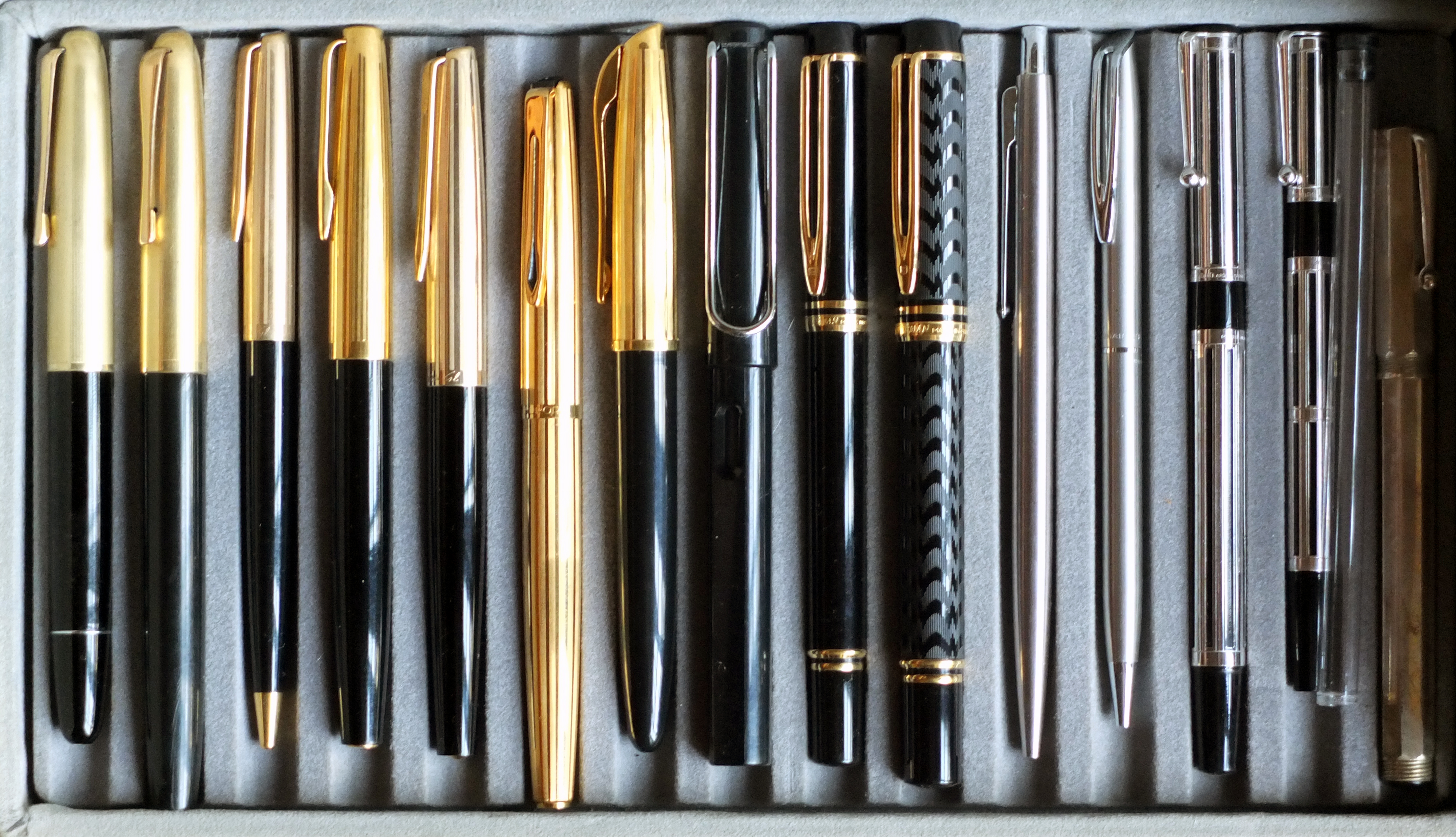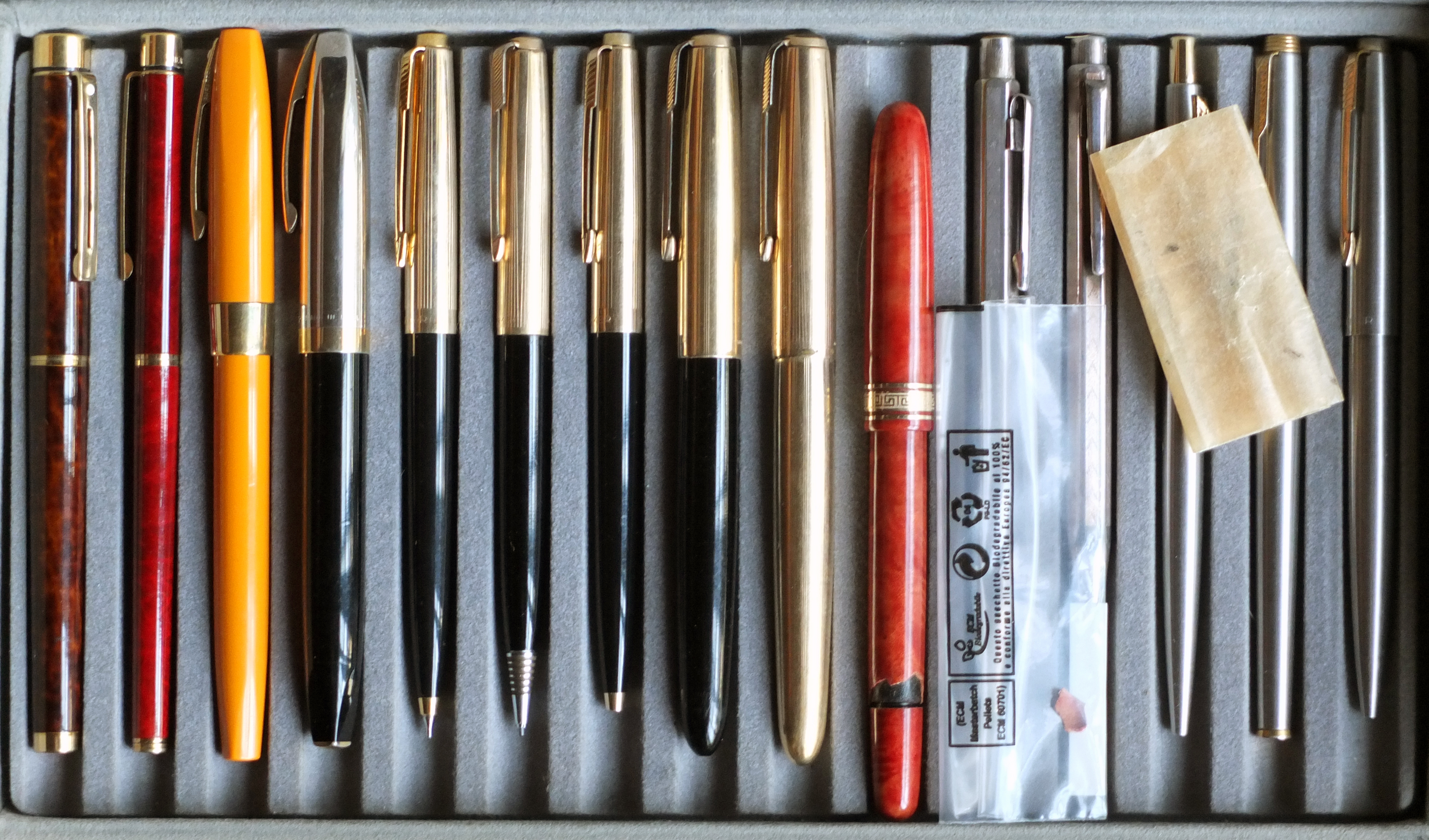 In totale ne avevo contate circa 120, di cui 10 le ho regalate a figlie e nipoti (Pelikan, Waterman e Sheaffer).