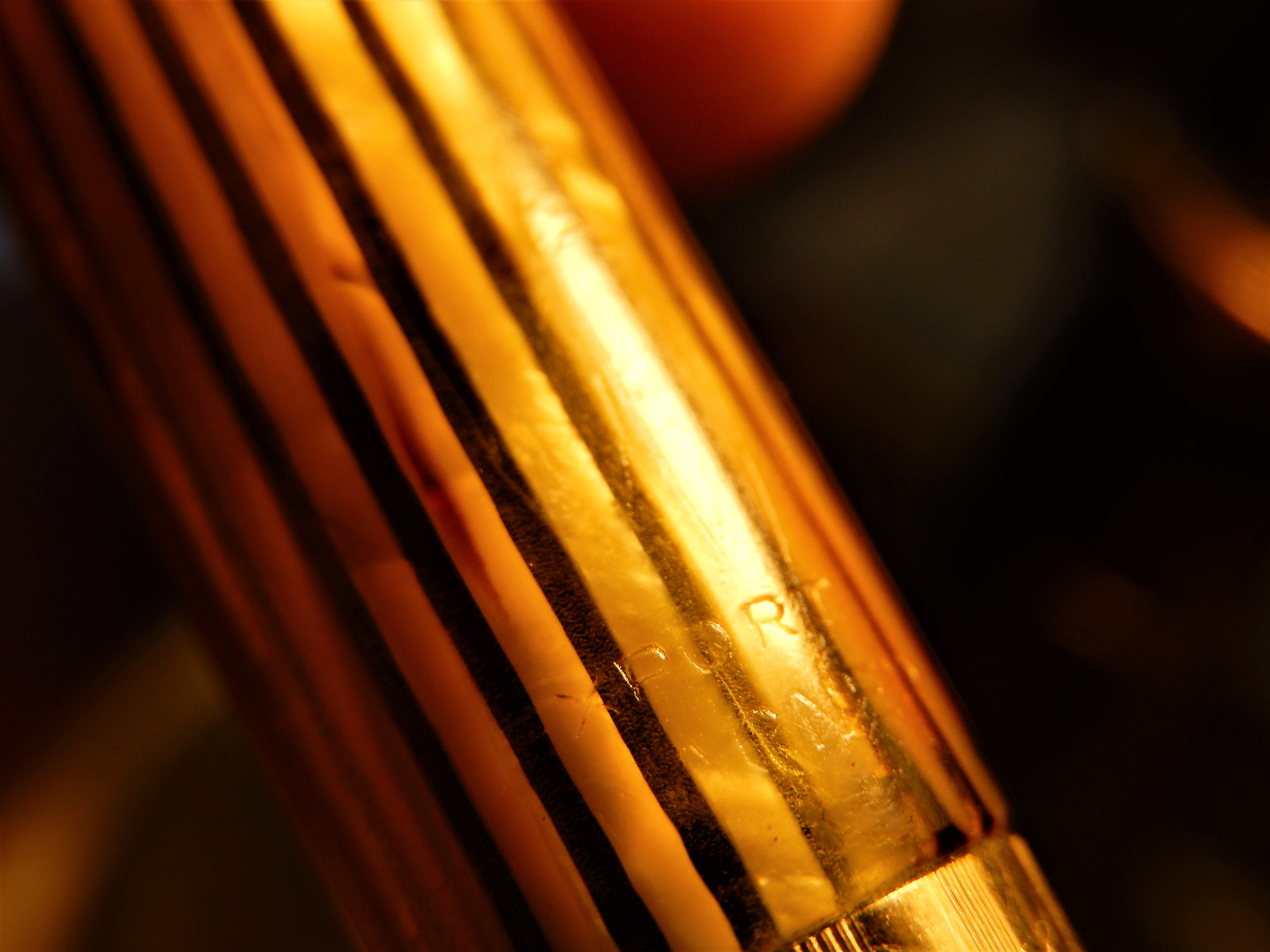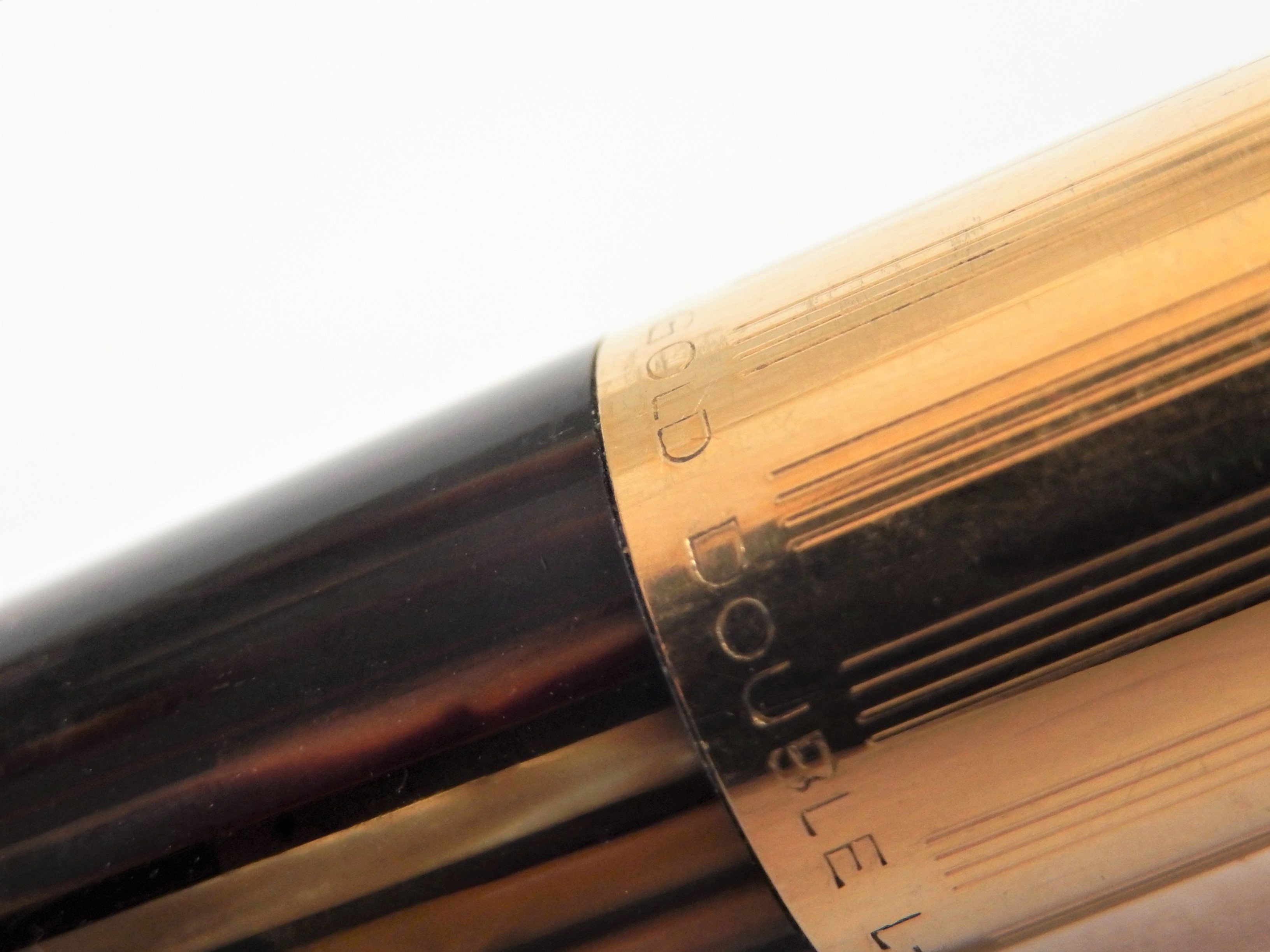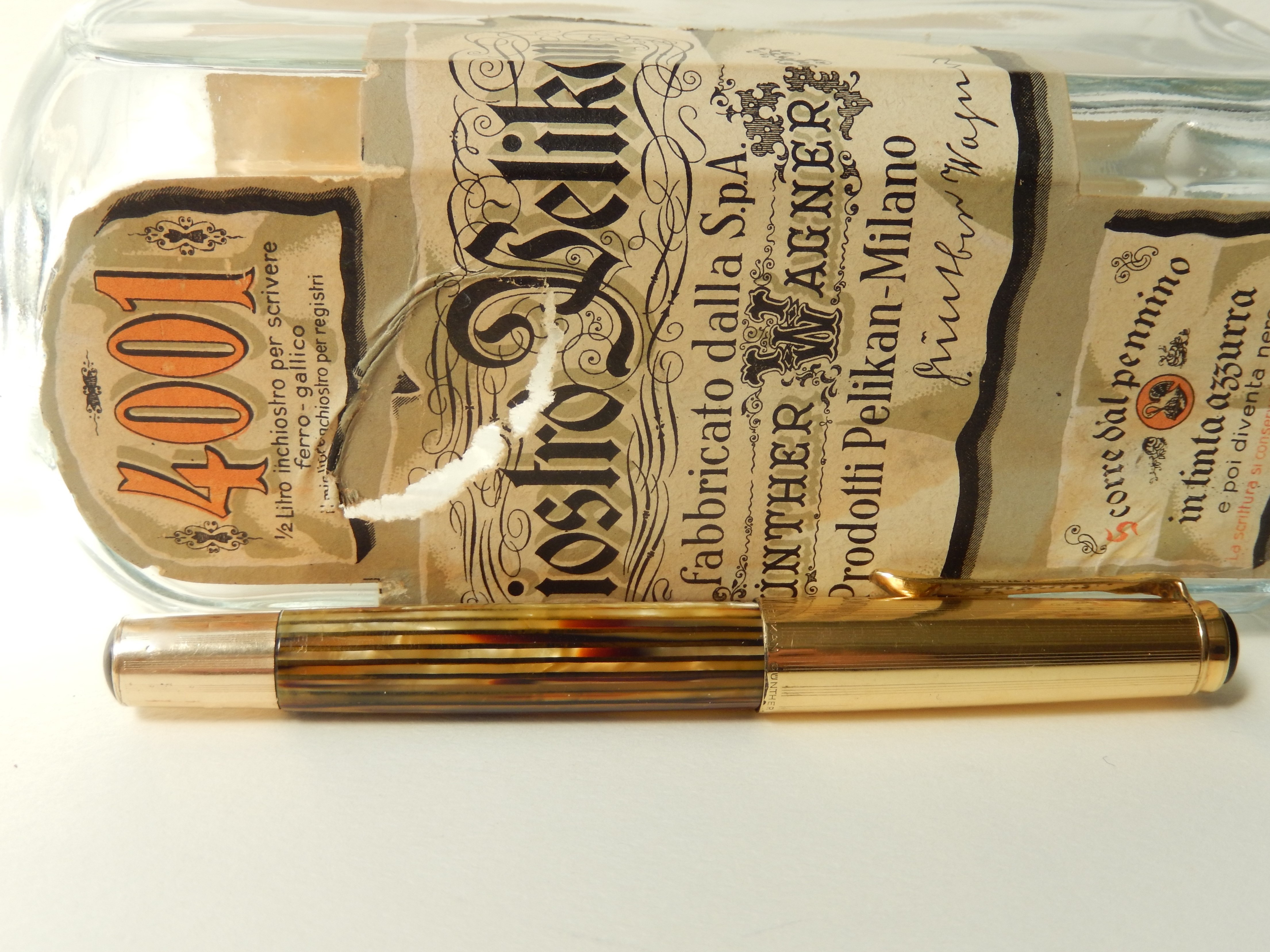 Sul labbro del cappuccio si legge " Pelikan Doublé L Pelikan Gunther Wagner", dove doublé sta ad indicare una apposizione di oro 585 su una base di ottone, mentre credo che la L stia per "Laminat", con una lavorazione che doveva garantire un qualcosa di molto più duraturo rispetto ad una semplice doratura . Sul corpo, di una bellissima trasparenza, troviamo la scritta " Gunther Wagner" sovrastata dall'indicazione "Export" Si trovano anche esemplari con altre scritte, come " Gunther Wagner Germany" o " Pelikan 500 Gunther Wagner Germany" La penna era in catalogo a 38 marchi, quando una 400 veniva venduta a 25 marchi ed una 120 a 7,60.