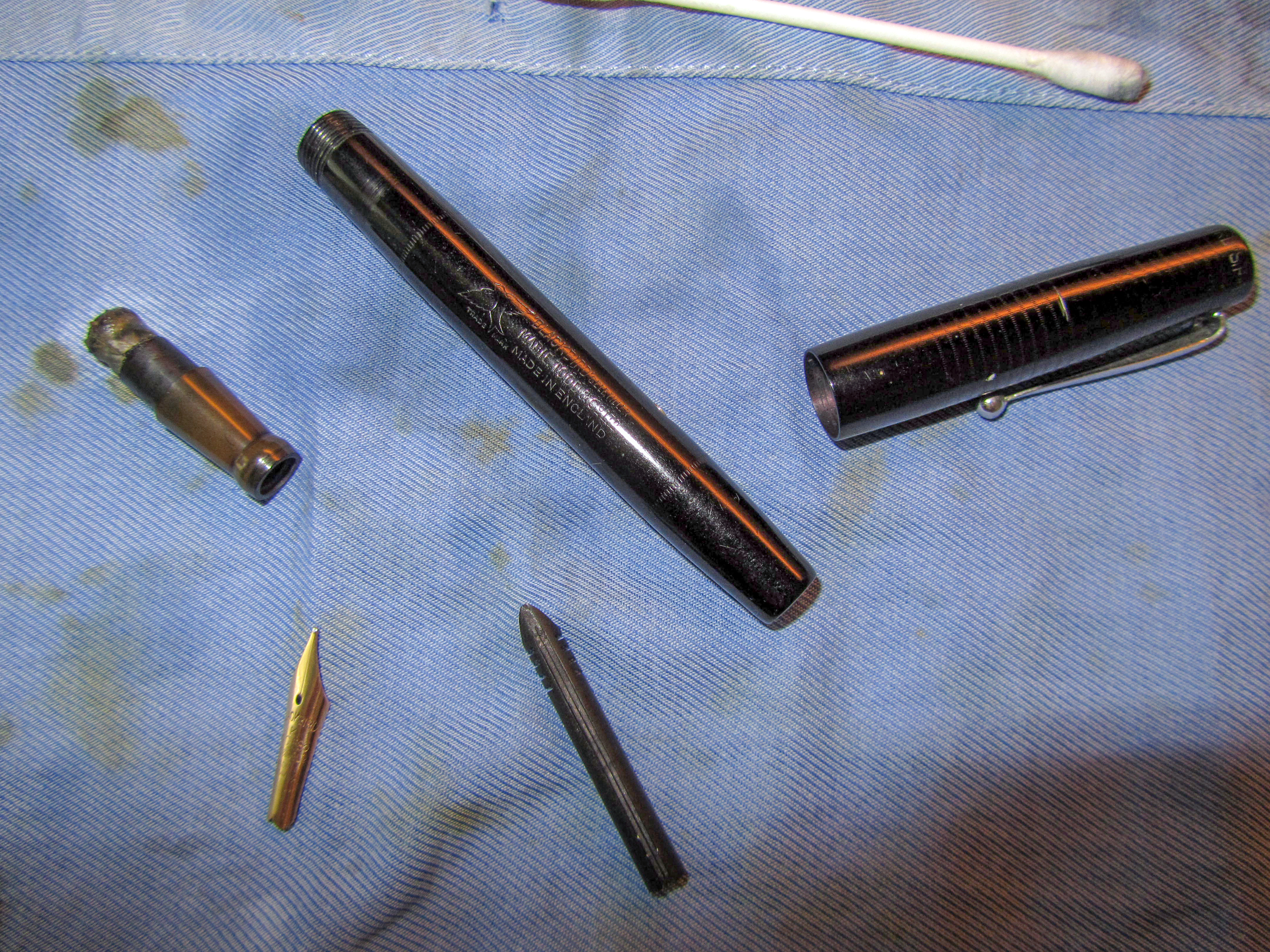 Il phon od un altro attrezzo che generi calore penso sia necessario, dal momento che, se presente, la gommalacca/shellac comincia a fondere attorno a 60-70°C, ipotizzo sia il solo modo per allentare un po' le frizioni tra i pezzi. Non applico mai forze brusche o strattoni sulla penna, nel caso di altre penne proprio ammorbidendo la giunzione della sezione infatti, i pezzi si sono separati senza alcuna difficoltà.