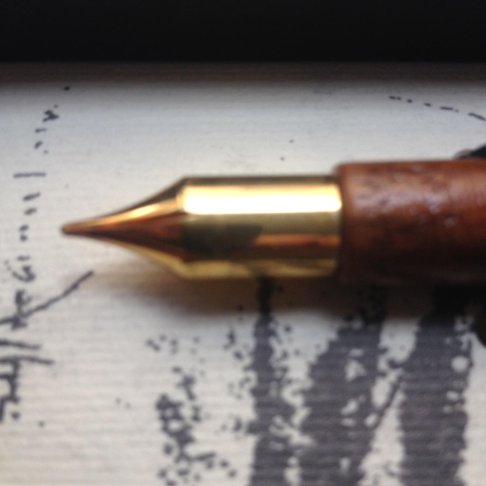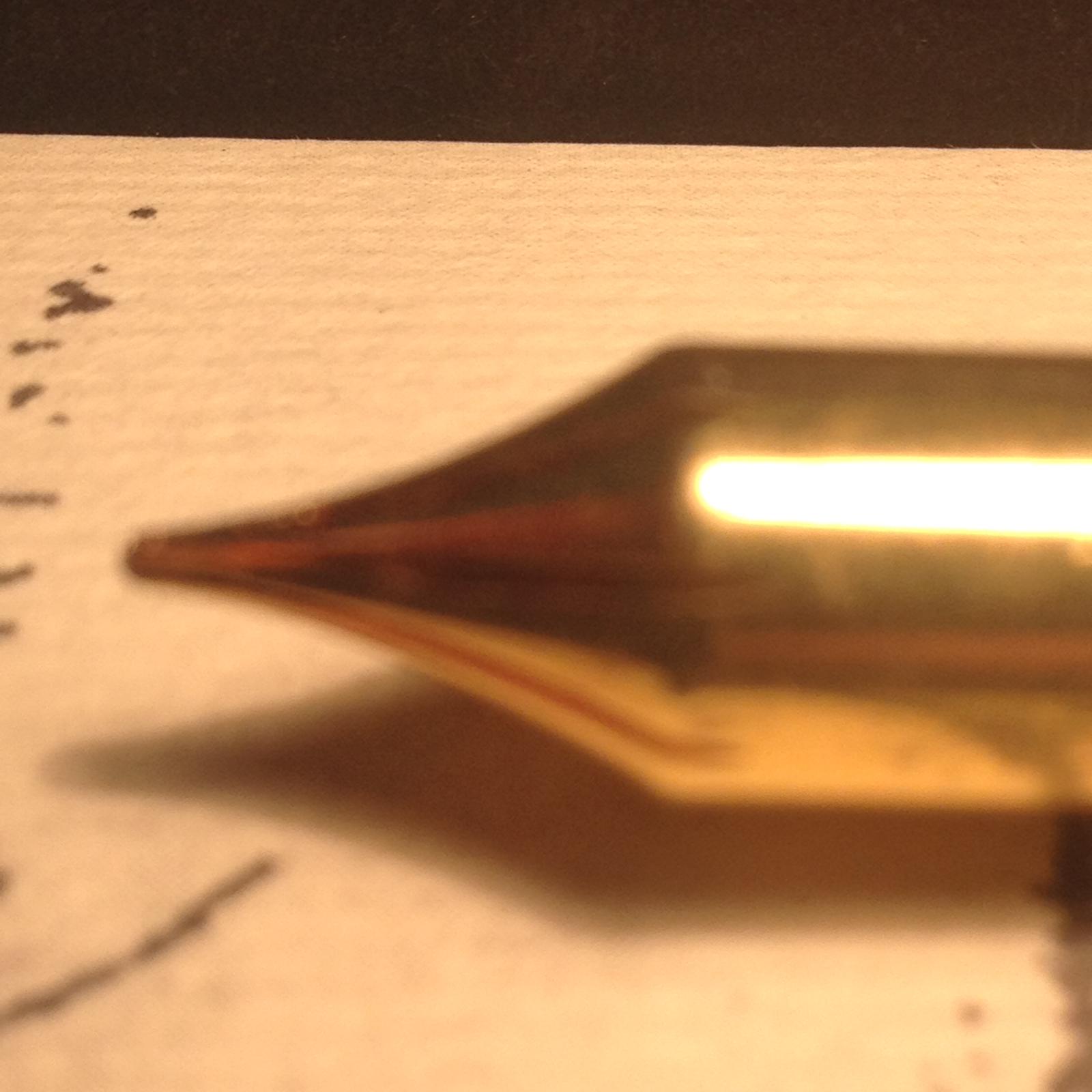 Quello che posseggo, d’altro canto, trattenendo solo qualche goccia nell’intercapedine del puntale dopo la intinzione, funziona benissimo e, grazie all’arrotondamento della punta, scrive tutto sommato anche bene, senza impuntamenti o sbavature, dopo un po’ di pratica nel dosaggio dell’inchiostro.