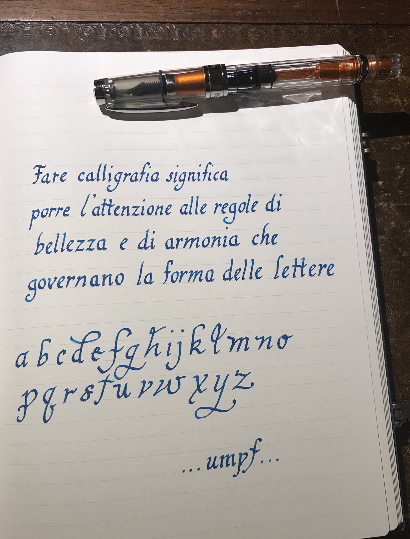 Mumble, non saprei da che parte cominciare ma.. il senso è questo: imparare a copiare una scrittura calligrafica in modo preciso oppure.. studiarla, prenderne gli elementi che piacciono e farli propri, inglobando dunque nella propria grafia personale solo quelli che ci soddisfano?