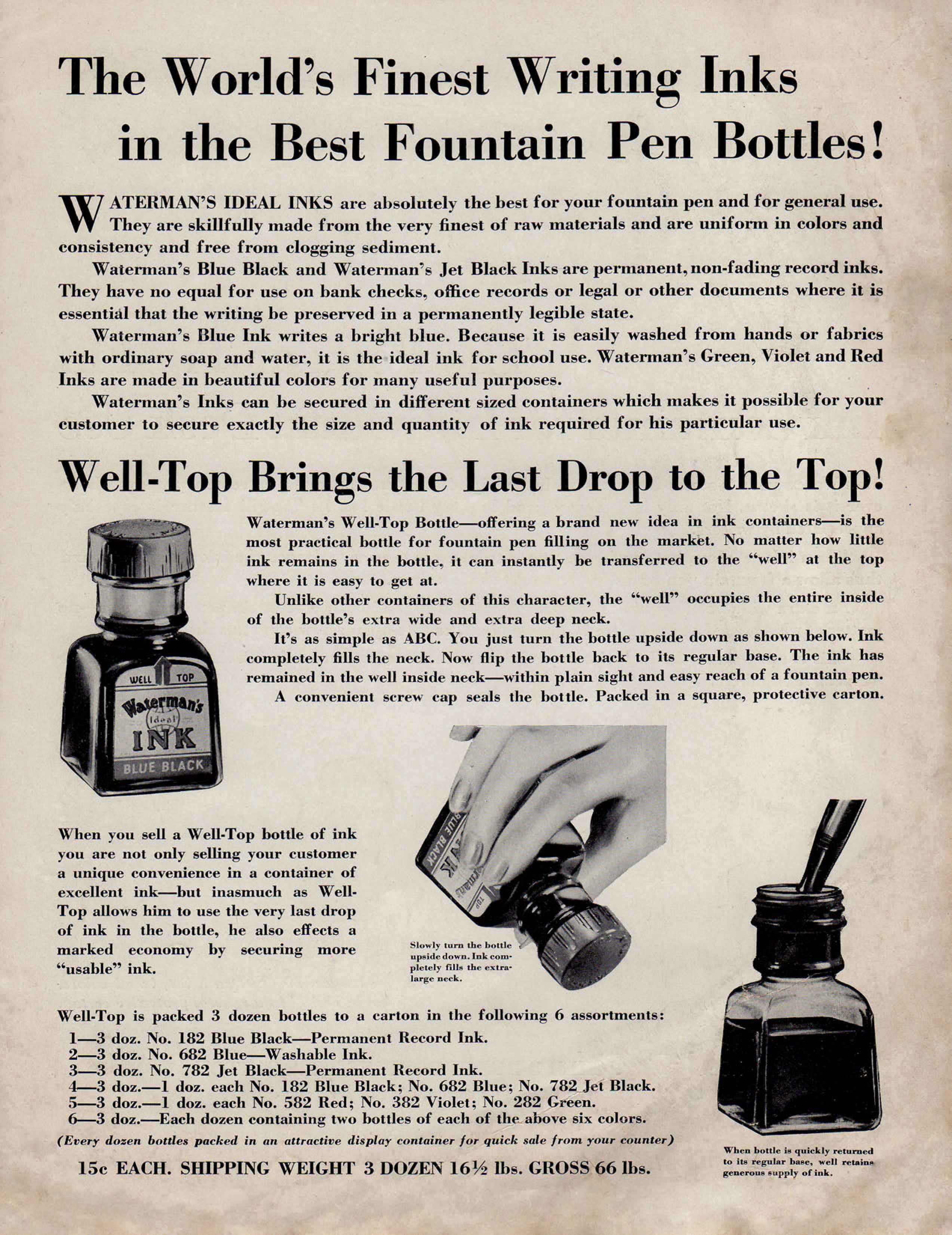 Non vorrei contraddire gli Olandesi, ma il calamaio "ribaltabile con pallina" dovrebbe essere un brevetto della L.E. Waterman di New York.