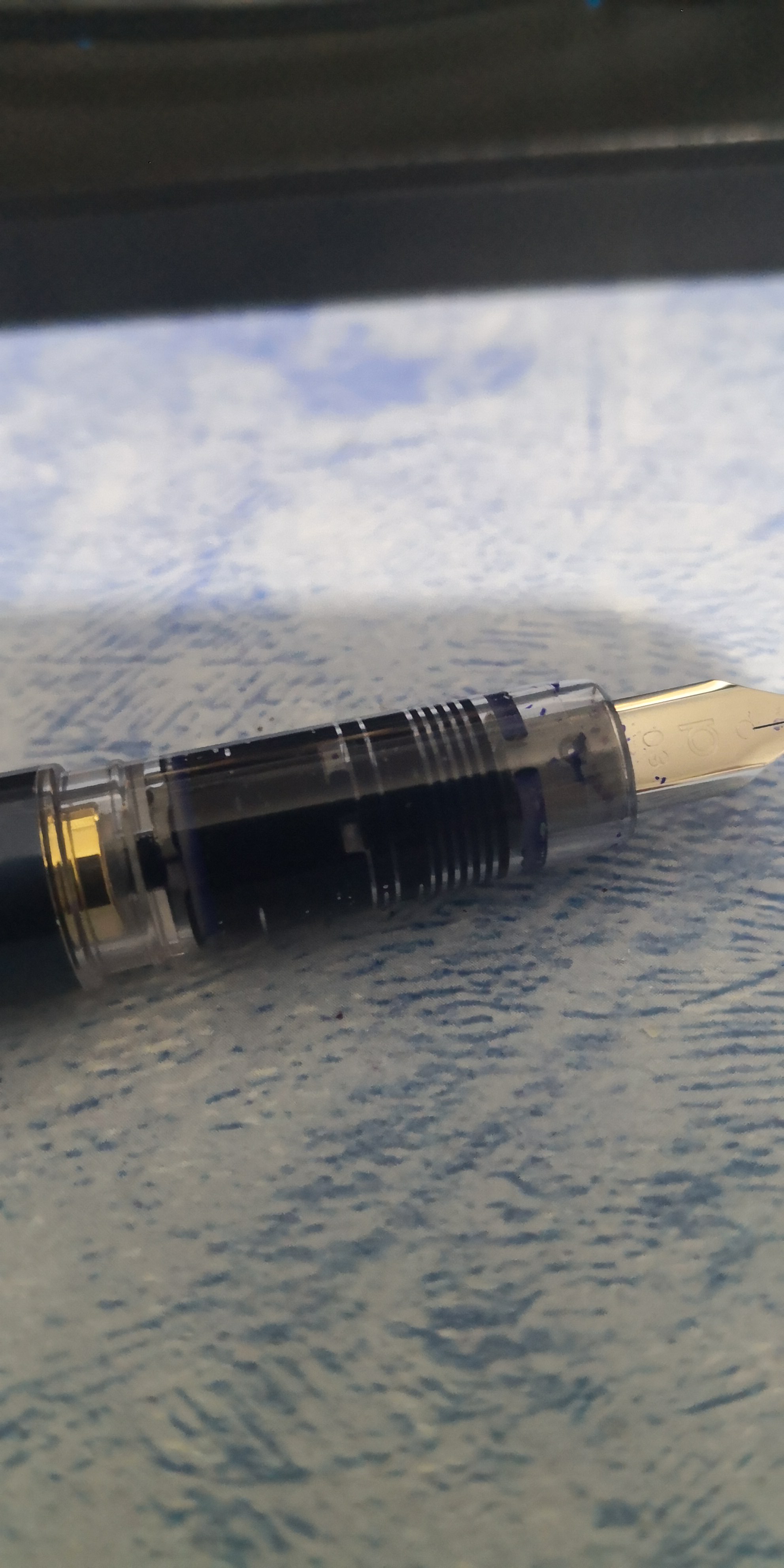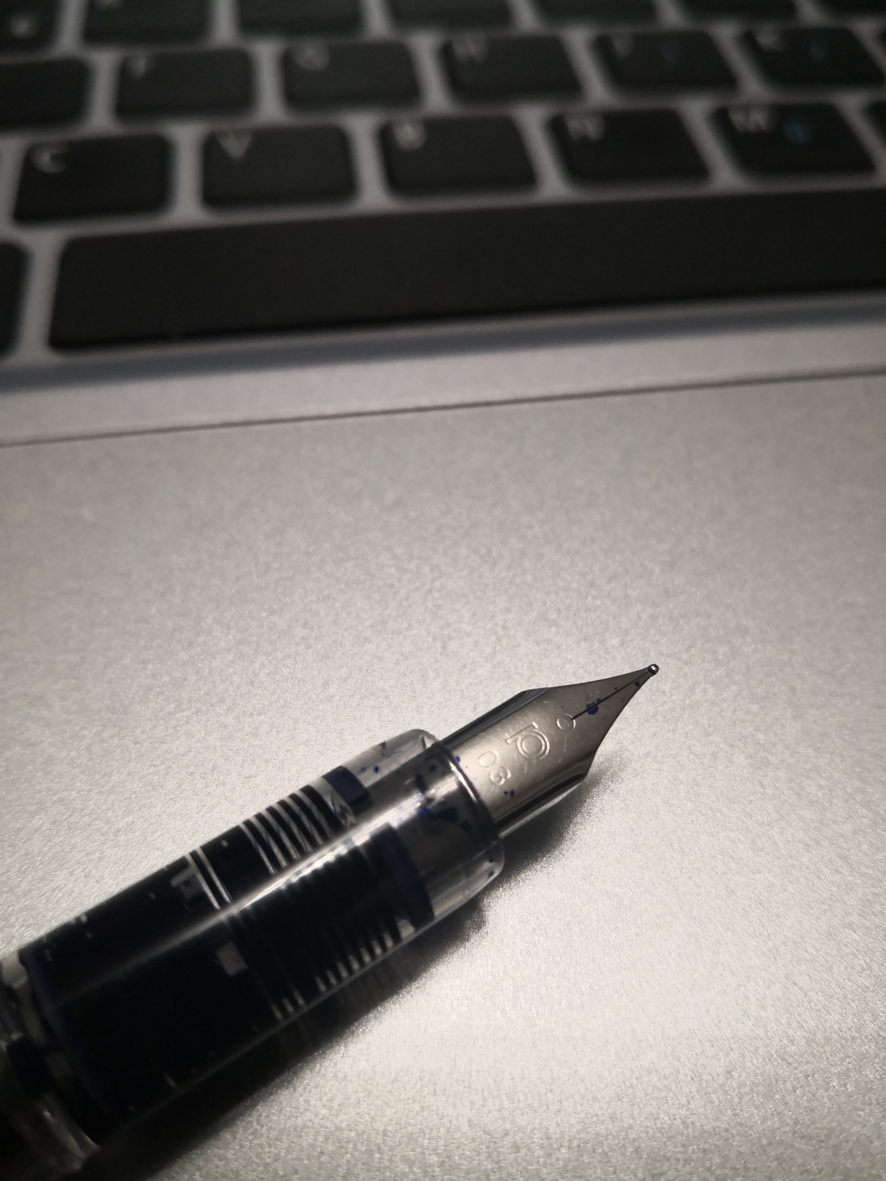 Il pennino è in acciaio, riporta il logo dell'azienda e la dicitura 0.3, l'alimentatore è trasparente e mostra un po' il comportamento dell'inchiostro al suo interno. Questa è una cosa che a me francamente non piace, ma penso siano gusti. Quando ho caricato la penna ed ho visto tutto il blocco dell'alimentatore riempirsi di inchiostro mi sono chiesto se l'avessi già rotta o se perdesse qualcosa :D