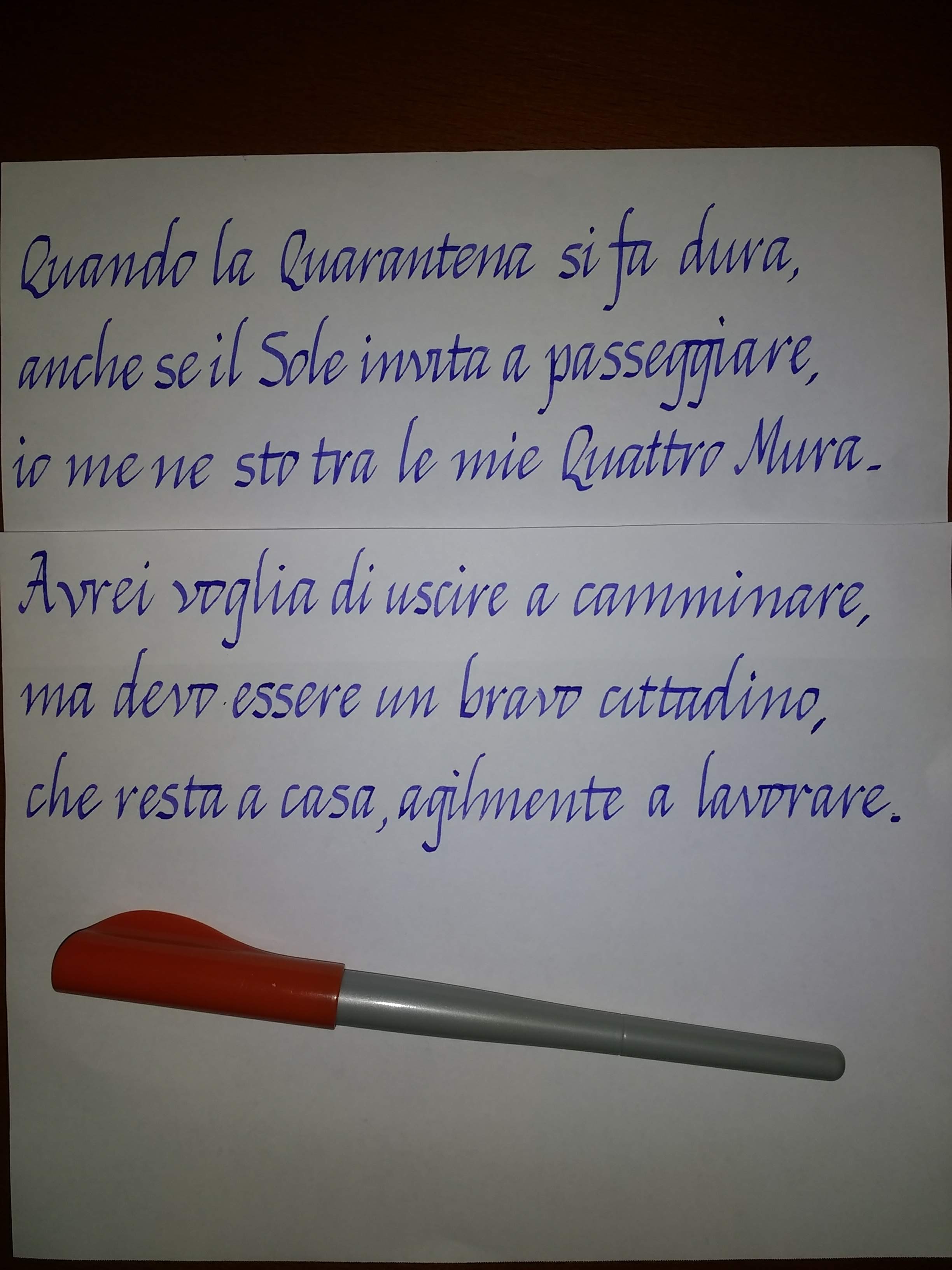 È la parallel 1.5 con dentro l'inchiostro Diamine Sapphire Blue. Ho comperato due anni fa in libro di cancelleresca, ma ormai mi sono rassegnato. Resterò sempre scarso.