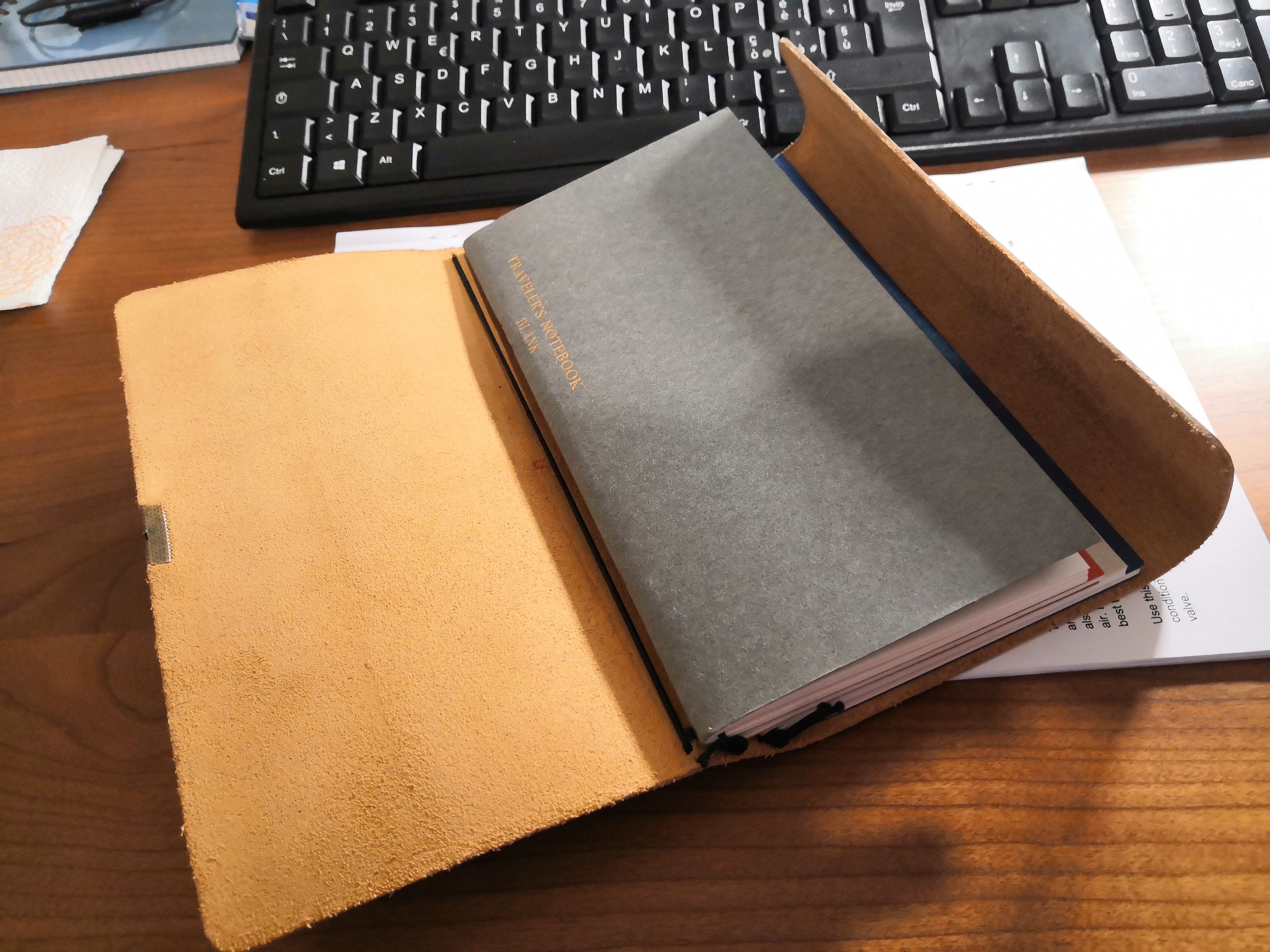 Seconda domanda: Ho acquistato un bellissimo quaderno della GPL Creations con carta Tomoe River, e elastico a parte (che mi è rimasto in mano forse al decimo utilizzo) e ci entrerebbe dentro un Traveler's Notebook nonostante la copertina in similpelle?