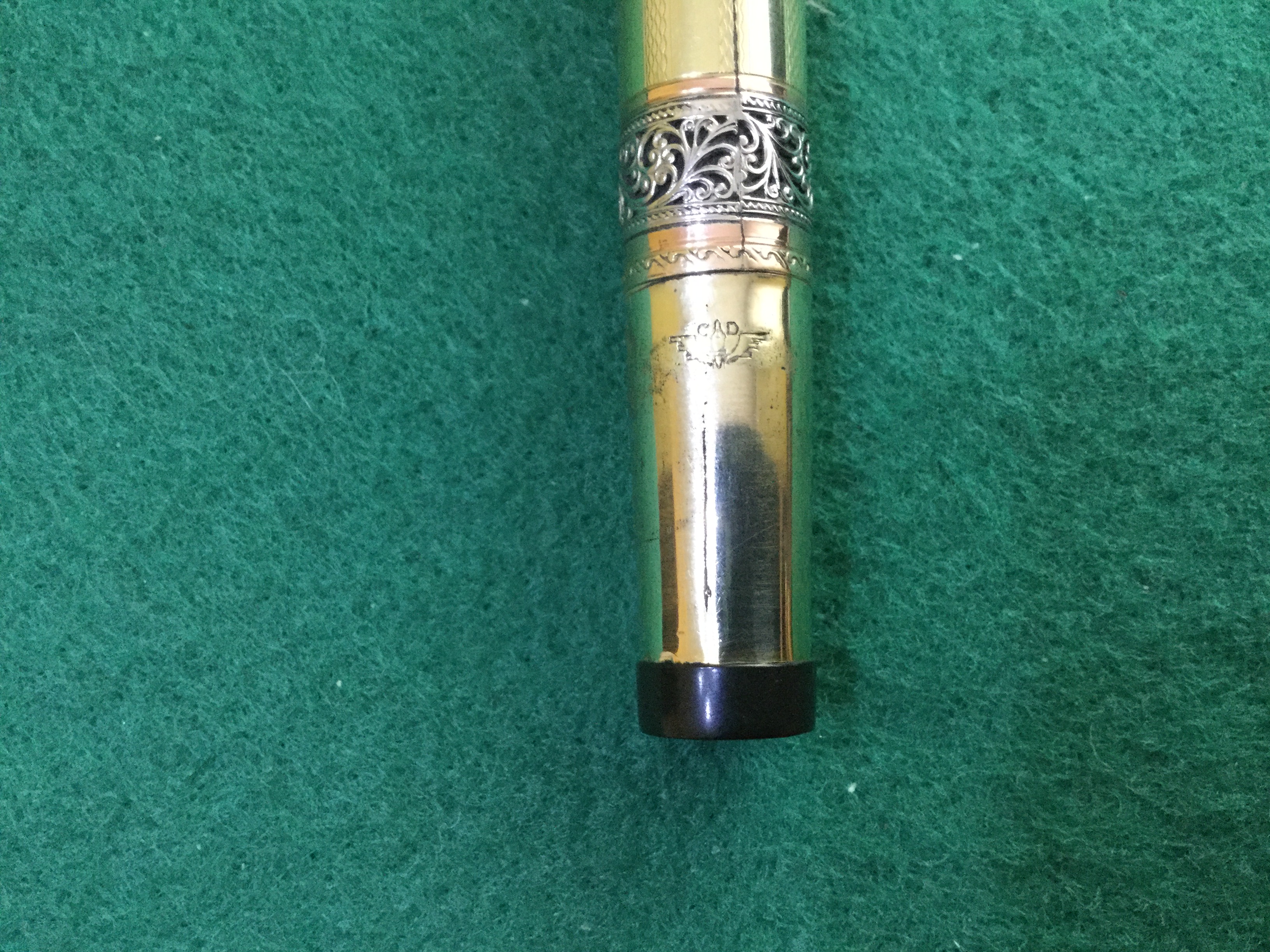 Come ti han già detto è una Waterman 42, con rivestimento laminato italiano. Le foto hanno risoluzione molto bassa, ma mi pare di riconoscere il marchio del concessionario del tempo (Il rag. D. Capra) che qualifica il rivestimento come "autorizzato", e che pone l'origine della penna a dopo il 1931.
