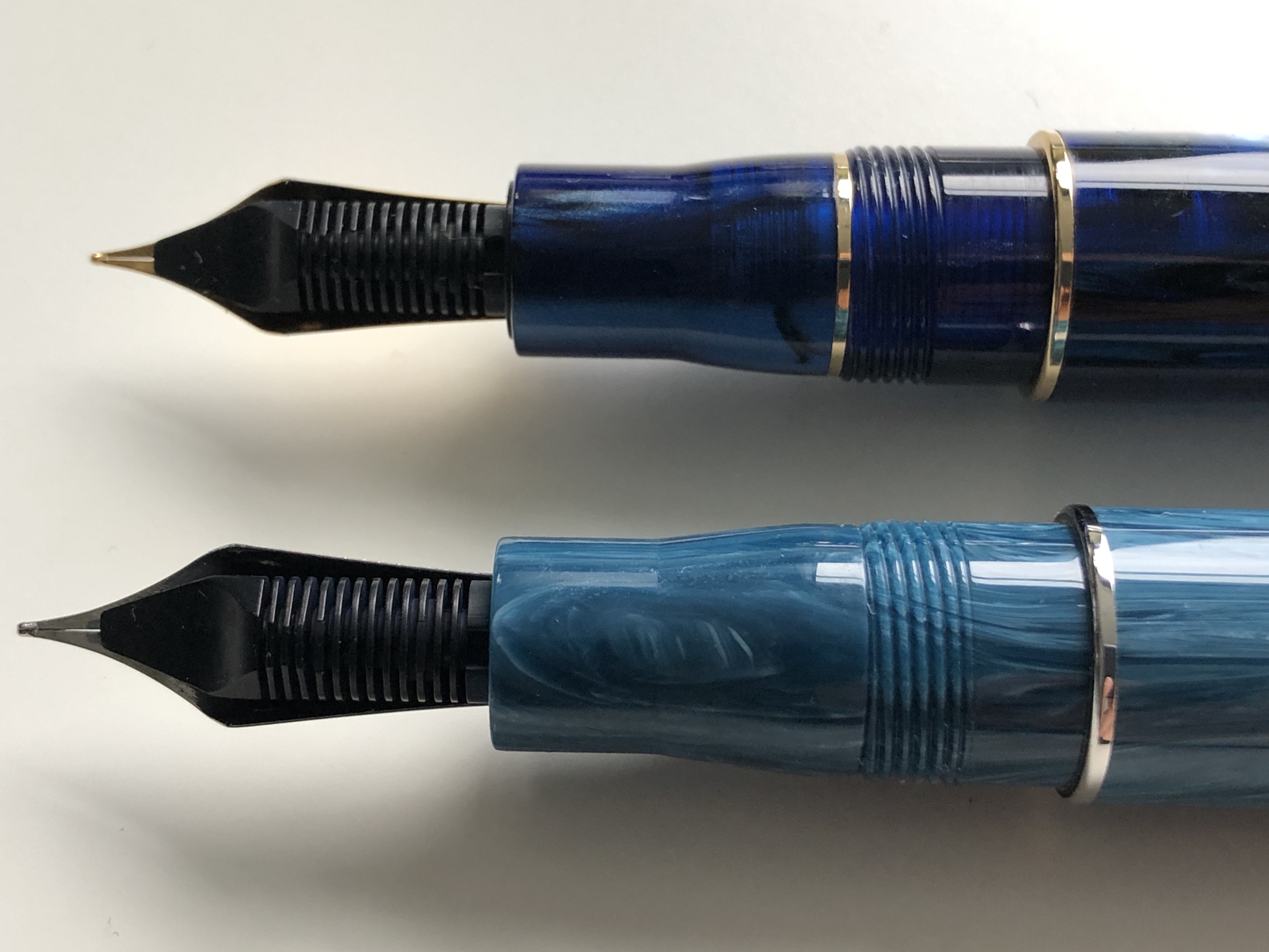 La mia scelta è caduta sul modello con il gruppo Bock. Il pennino è un n. 6, apparentemente disponibile soltanto in gradazione F. La spedizione è stata alquanto veloce: solo 7 giorni lavorativi. Appena tolta dalla scatola e messa alla prova, la penna ha mostrato un tratto molto scorrevole sulla carta, seppur lasci un leggero feedback che non sempre ritrovo sugli altri miei strumenti dotati di pennino di questo marchio.