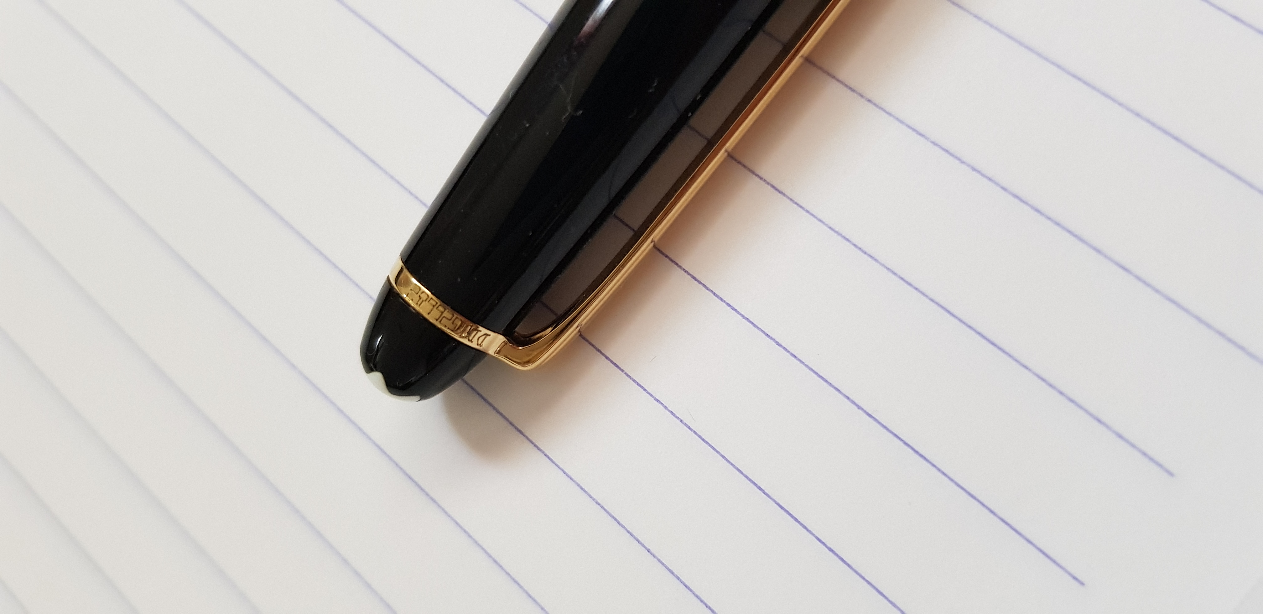 Sto cercando di identificare il modello di una Montblanc che negli anni '90 è stata regalata al mio compagno. L'anello del cappuccio riporta la scritta "Montblanc Meisterstuck", su quello della clip è inciso un numero di serie che inizia con DD. Il pennino è a due colori, ricarica a converter. Credo sia una 144, da quanto ho letto, ma quello che mi sembra più strano è il fatto che il cappuccio non è a vite... Non ho trovato informazioni... mi aiutate? Grazie!