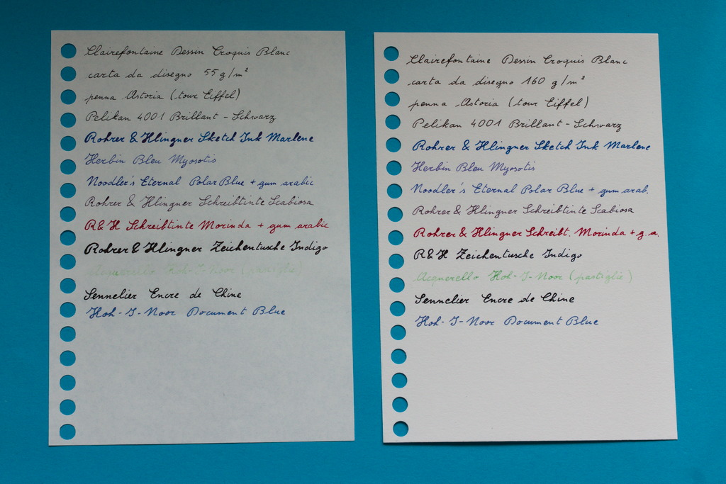 Ho preso la versione da 55 g/m² e quella da 160 g/m²: queste le mie pagine di prova carta standard (nota: sono tagliati in A6, non è un foglio A4 intero)