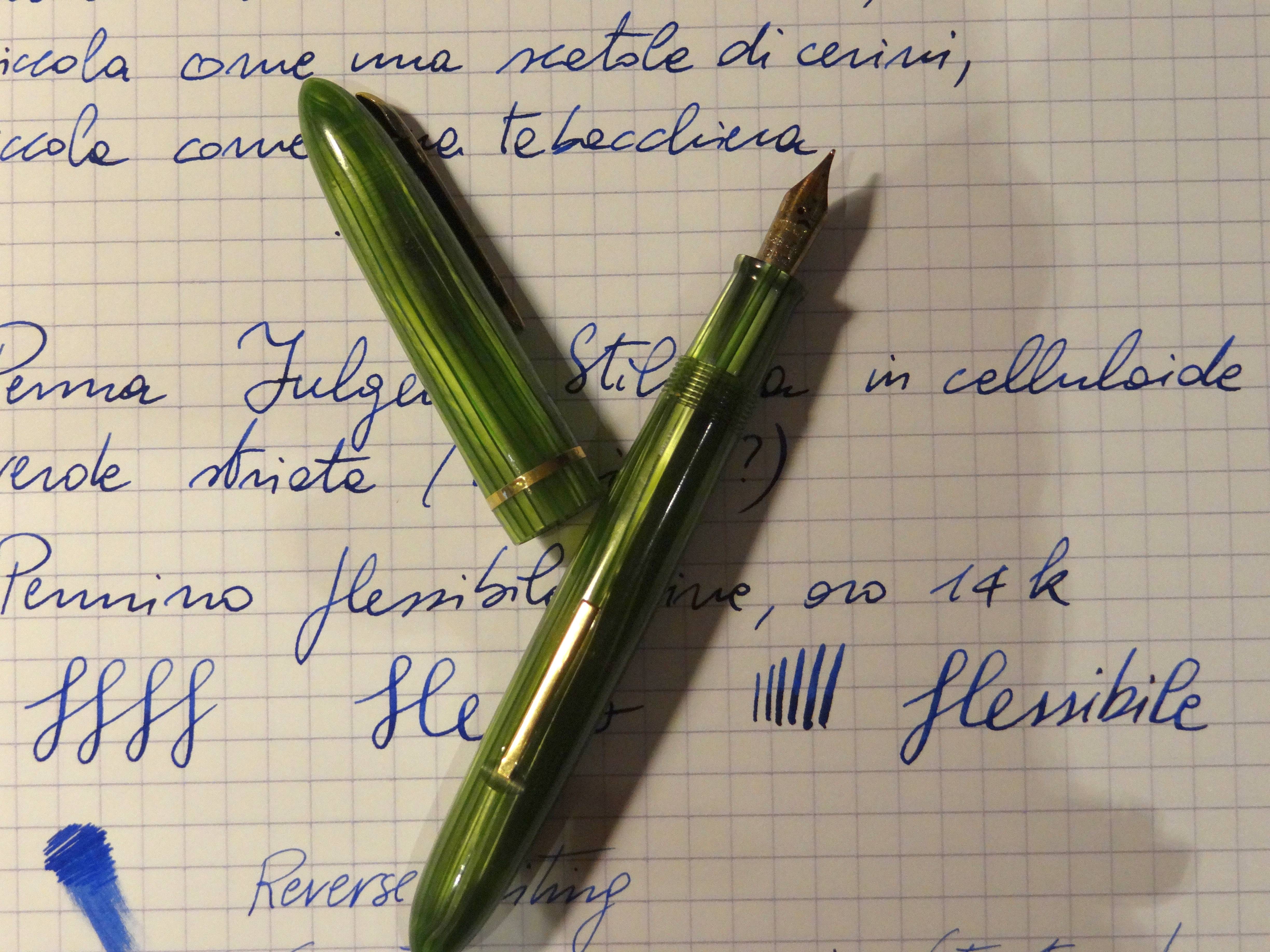 Perché oggi questi materiali sono scomparsi o quasi? Certo esiste un certo numero di produttori che propone belle penne in celluloide. Però la Fulgens credo fosse di fascia media, non particolarmente costosa...Domande retoriche?