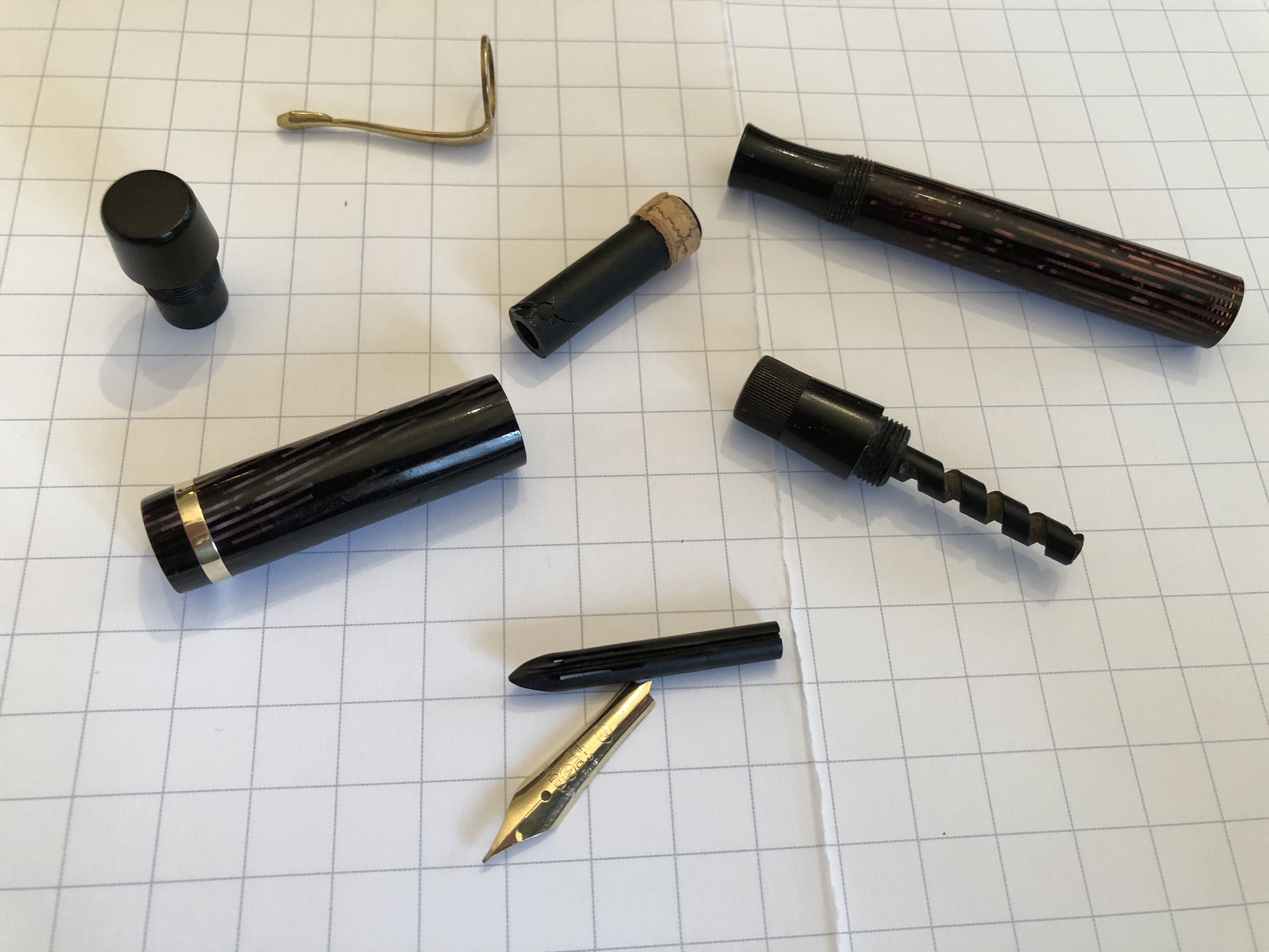 La stilo ha una struttura molto semplice, a tutto vantaggio della robustezza e della facilità di manutenzione, ed ecco un altro parallelo con molti modelli Pelikan. Il caricamento é a stantuffo, con un meccanismo simile a quello della Pelikan 100, anche se a mio parere un poco più rozzo. Credo che la guarnizione fosse in sughero, sicuramente lo é quella che ho costruito