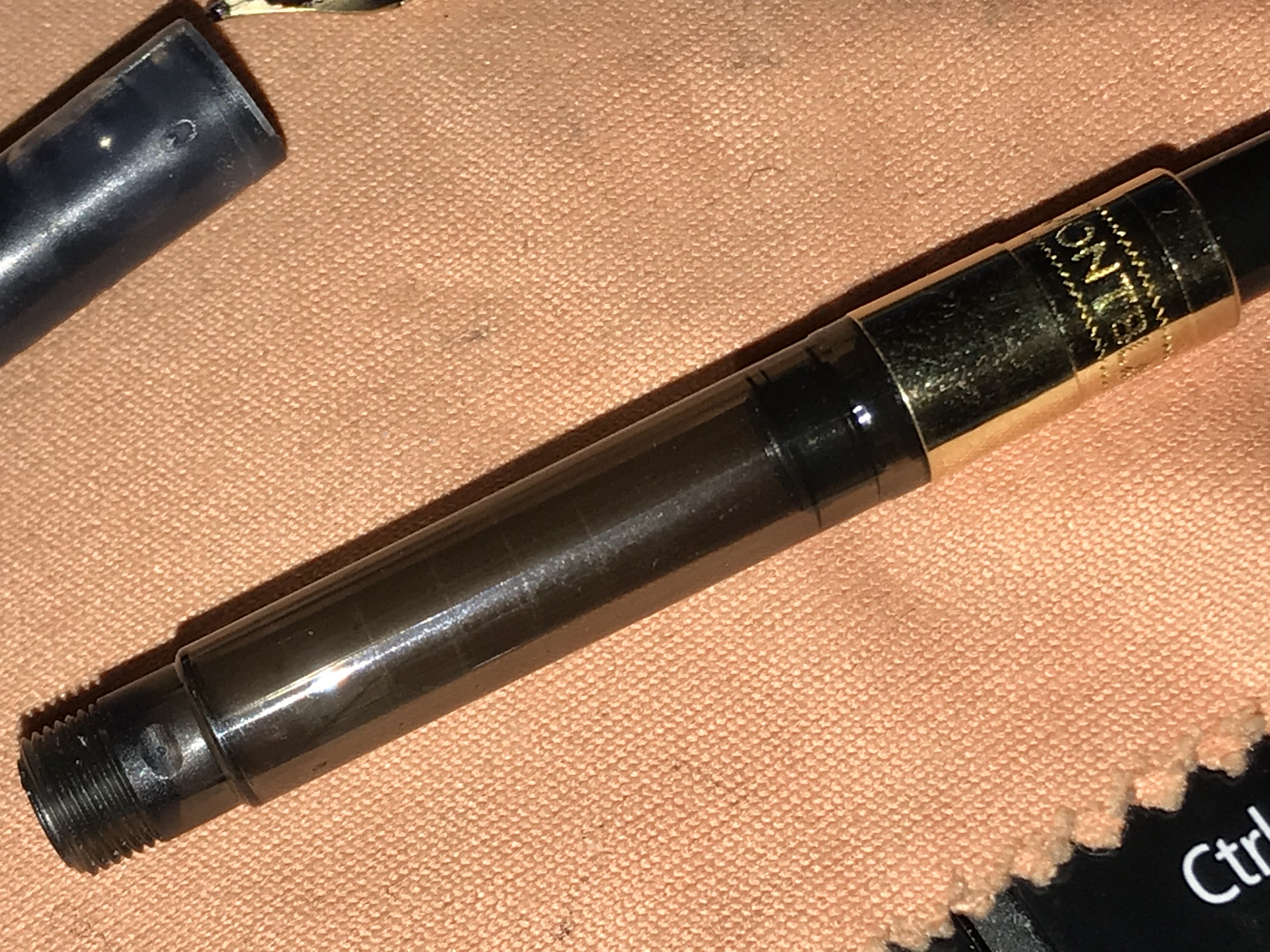 Problema: ho provato a caricare la penna inserendo il pennino nel calamaio e,con sorpresa, nel “serbatoio” in dotazione non entra nulla. Ho fatto la prova intingendo direttamente il serbatoio nel calamaio ed aspira perfettamente. Dunque, suppongo che il problema sia che il serbatoio non collima perfettamente con l’interno della penna. Ho postato un paio di foto... Come posso risolvere? Il serbatoio alla base ha una filettatura che non ha corrispondenza all’interno della penna. Che sia il serbatoio sbagliato?