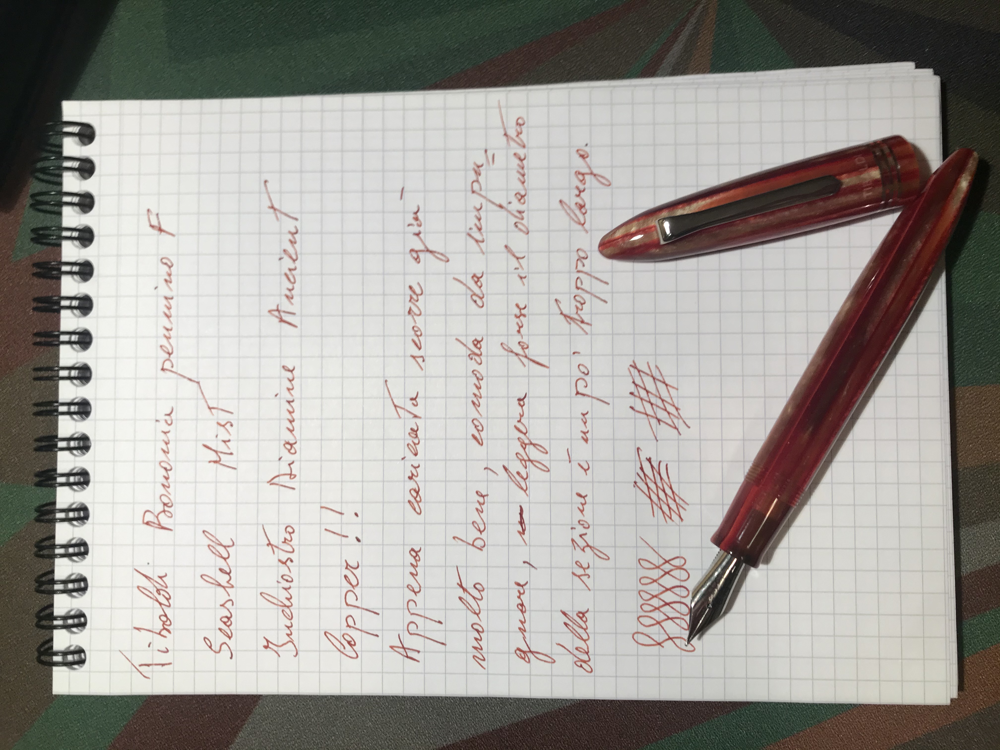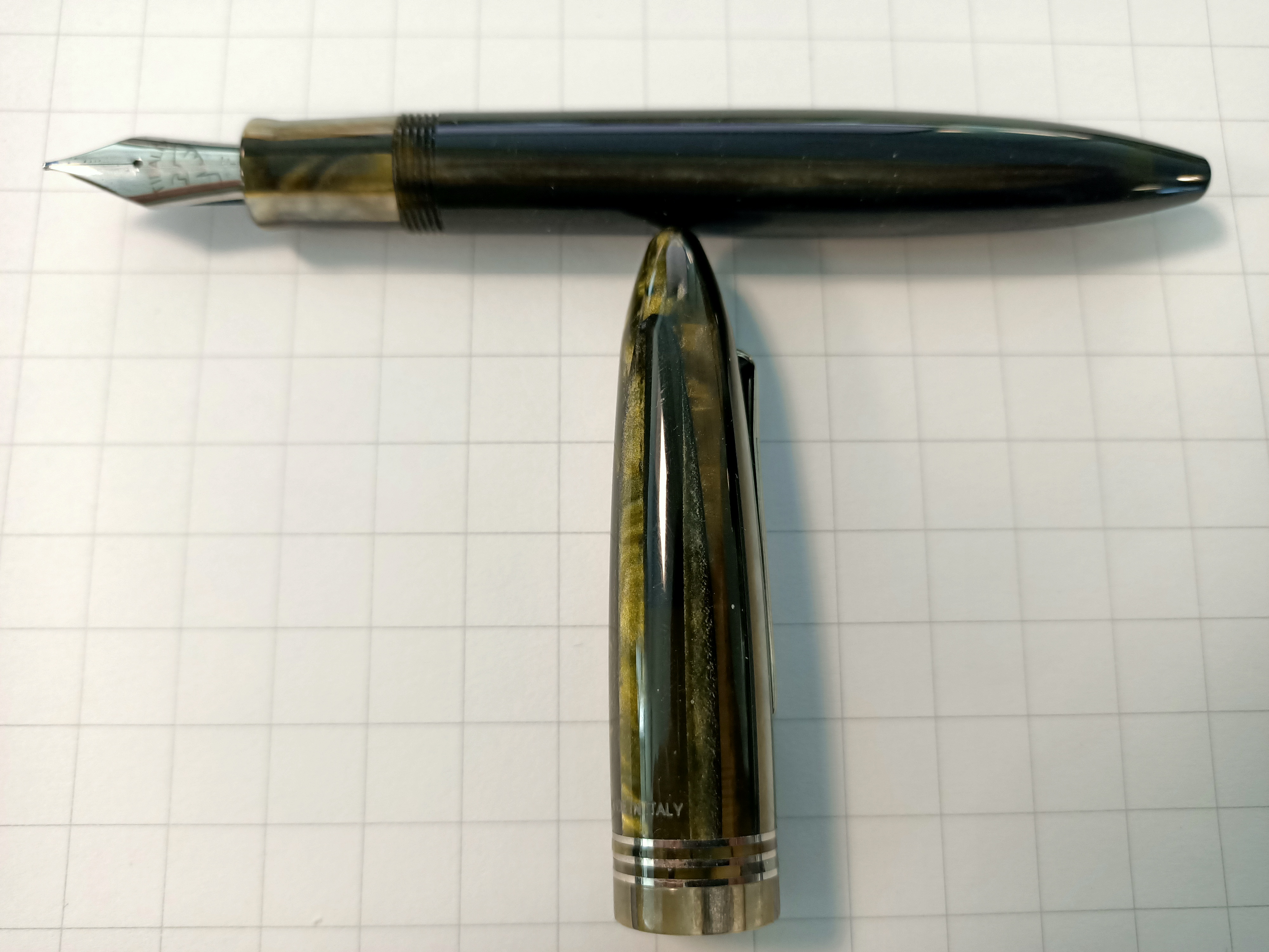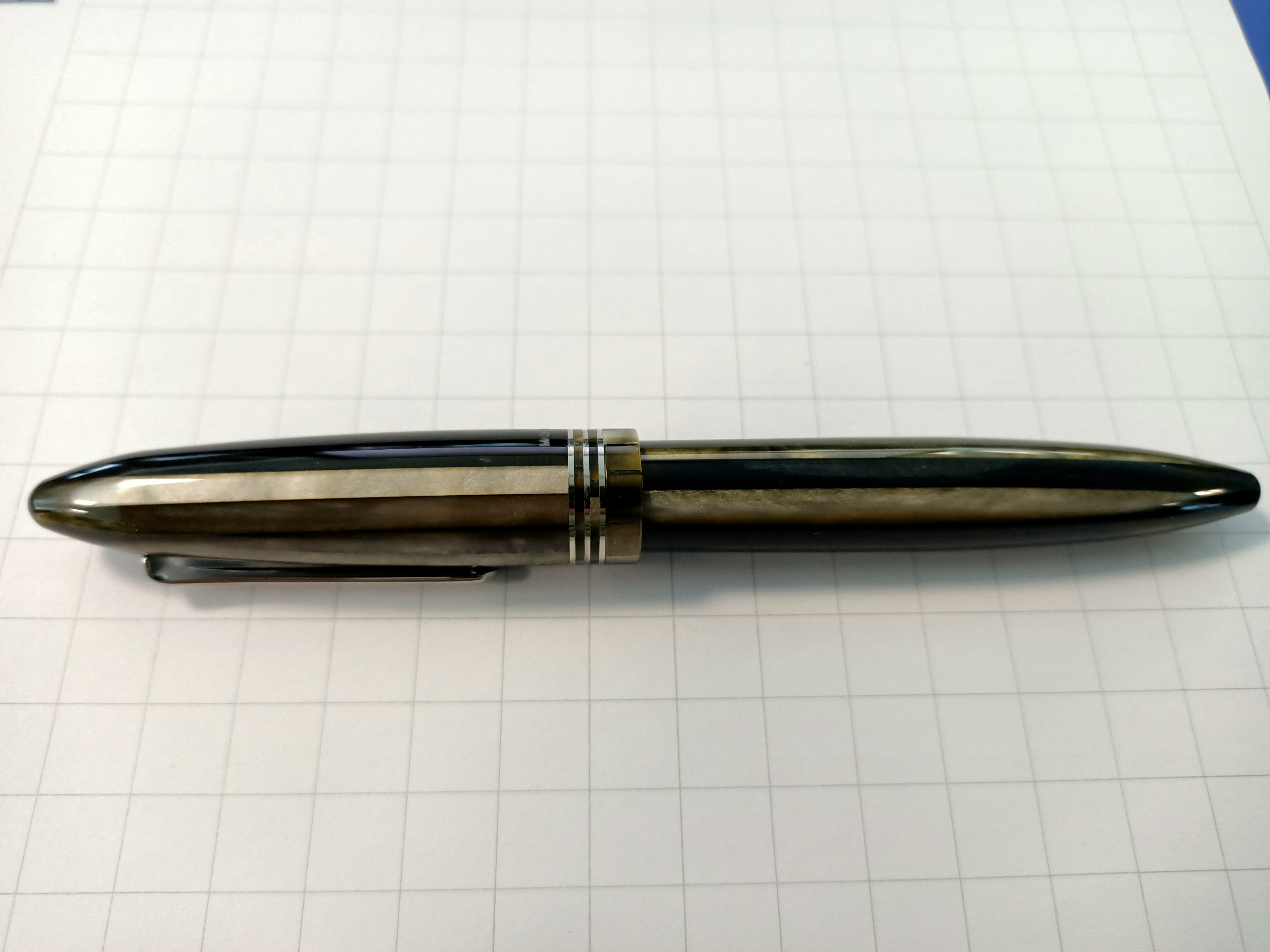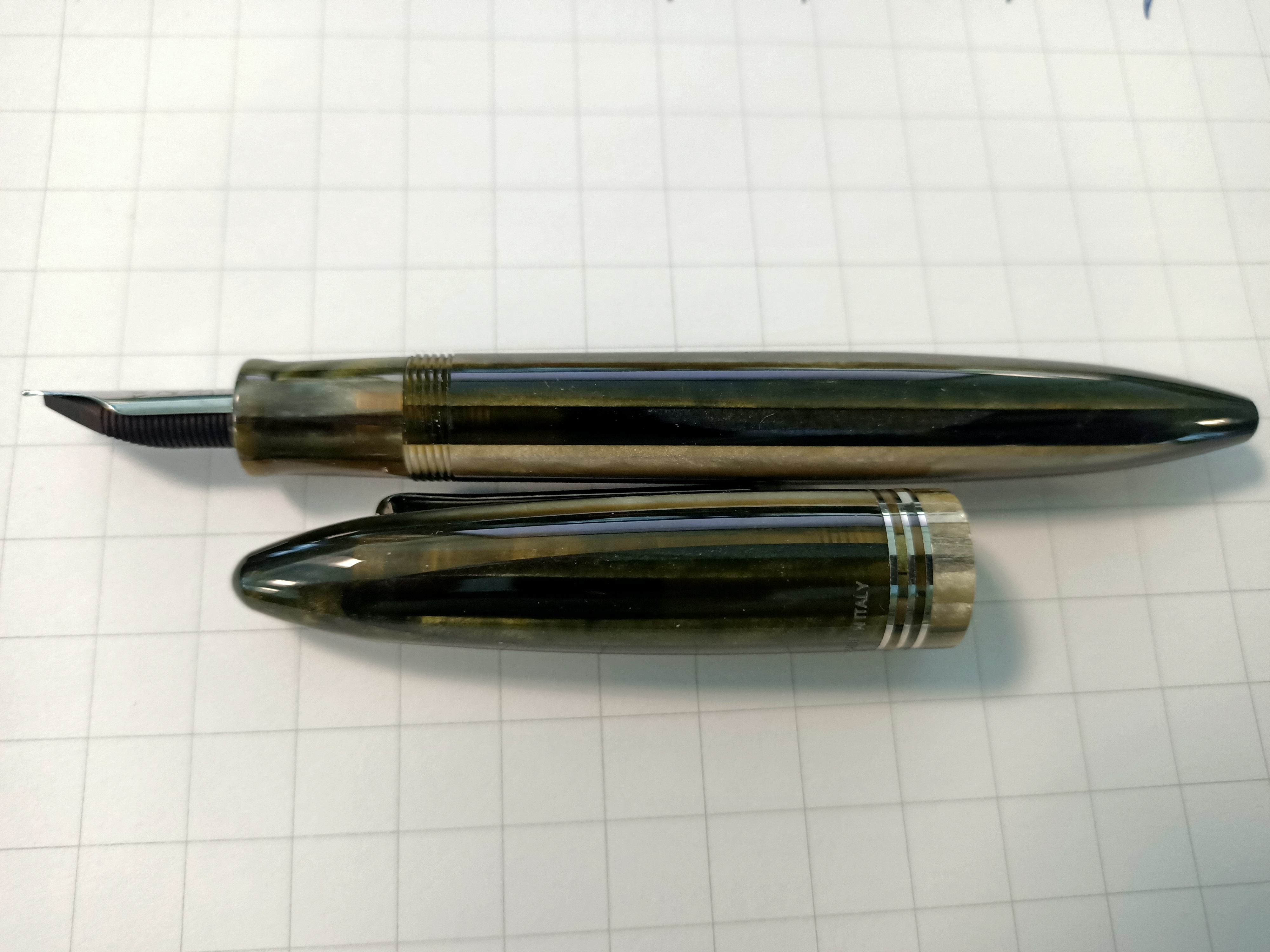 Apprezzo assolutamente che sul fusto non ci siano anellini metallici, neppure per separare il serbatoio dalla sezione. E mi piace che non ci sia "gradino" dove inizia la sezione. Il prezzo non é malvagio e neppure regalato per una penna con pennino in acciaio. Ma hanno B e BB, che se fossero un po' tronchi potrebbero essere interessanti, e l'alimentatore in ebanite, un bel dettaglio.