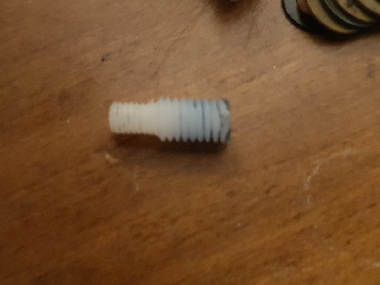 Il pistone della 88 si può riparare riportandolo come era in origine. Leggo di chi vuole mettere viti o dadi in metallo. Io credo che se nel pistone non c'erano pezzi metallici sarebbe meglio non metterceli. Il sistema è molto semplice e non implica chissa quale manualità. Per prima cosa bisogna procurarsi delle viti in teflon del passo m5 (io le ho acquistate di vari passi e lunghezze in un negozio di modellistica). Poi bisogna avere una filiera per filettare la vite nella parte che deve avvitare dentro al pistone (io ho utilizzato una Bergeon che costa parecchi soldi e che può fare la differenza sul metallo ma, sinceramente, per il lavoro da svolgere su un materiale morbido come il teflon, va bene pure quella cinese da pochi euro). Si taglia alla base la parte filettata rimasta eventualmente integra e che risulta corta e si effettua una filettatura da 3,5 mm. La stessa cosa si fà con una estremità della vite da 5. Si taglia poi a misura e il pistone è ripristinato. Metto qualche foto che sono meglio di tante parole.