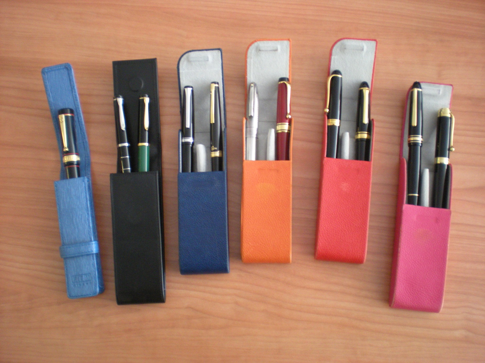 Nell'astuccio che porto in ufficio e che tengo a casa sulla scrivania, una inchiostrata in blu/nero (attualmente una Online in metallo) e una inchiostrata con colore (ora una Twibi eco): le uso a rotazione e, ça va sans dire, puntalmente sento la mancanza di quelle che mi aspettano nel cassetto.