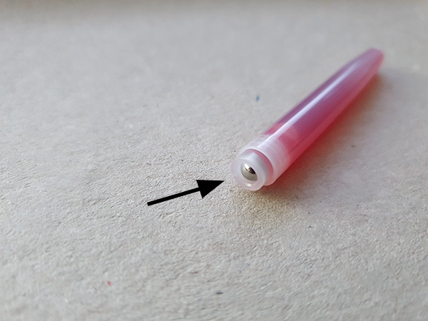 Non devi assolutamente fare altri buchi! La cartuccia è già dotata di tutti i buchi necessari e sufficienti al suo perfetto funzionamento. Inserendo la cartuccia la pallina di ferro si disincastra e sbatocchia libera e gioconda all'interno, tenendo l'inchiostro sempre sul chi vive, pronto a fluire e ben mescolato. Con una siringa devi solo iniettare l'inchiostro che preferisci dall'unico buco, quello che si incastra nella penna.