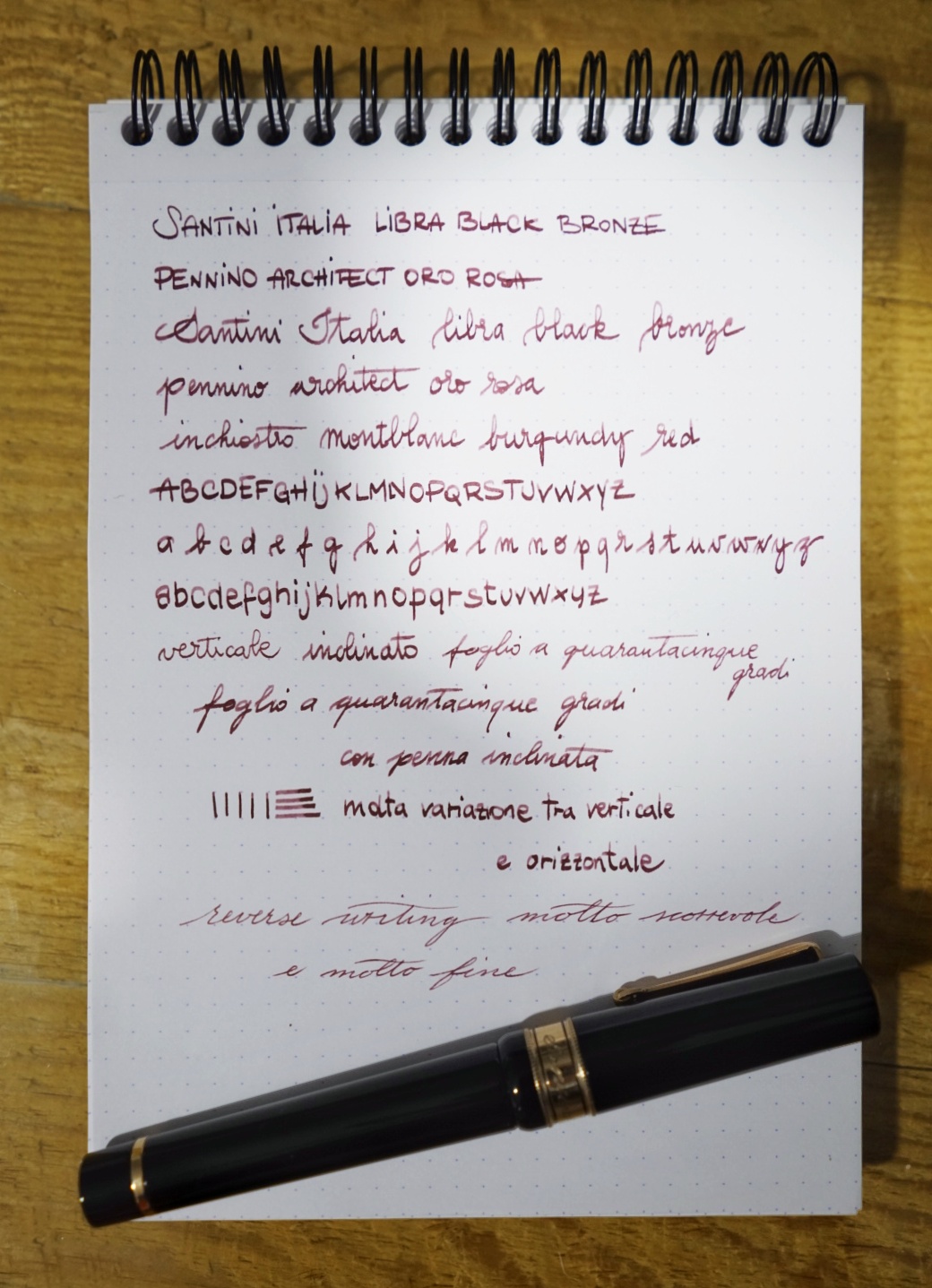 Al momento l'ho provato solo per "intingimento" con il diamine earl grey (ma il botticino è troppo piccolo e non ci entra la penna ) e poi col montblanc burgundy.