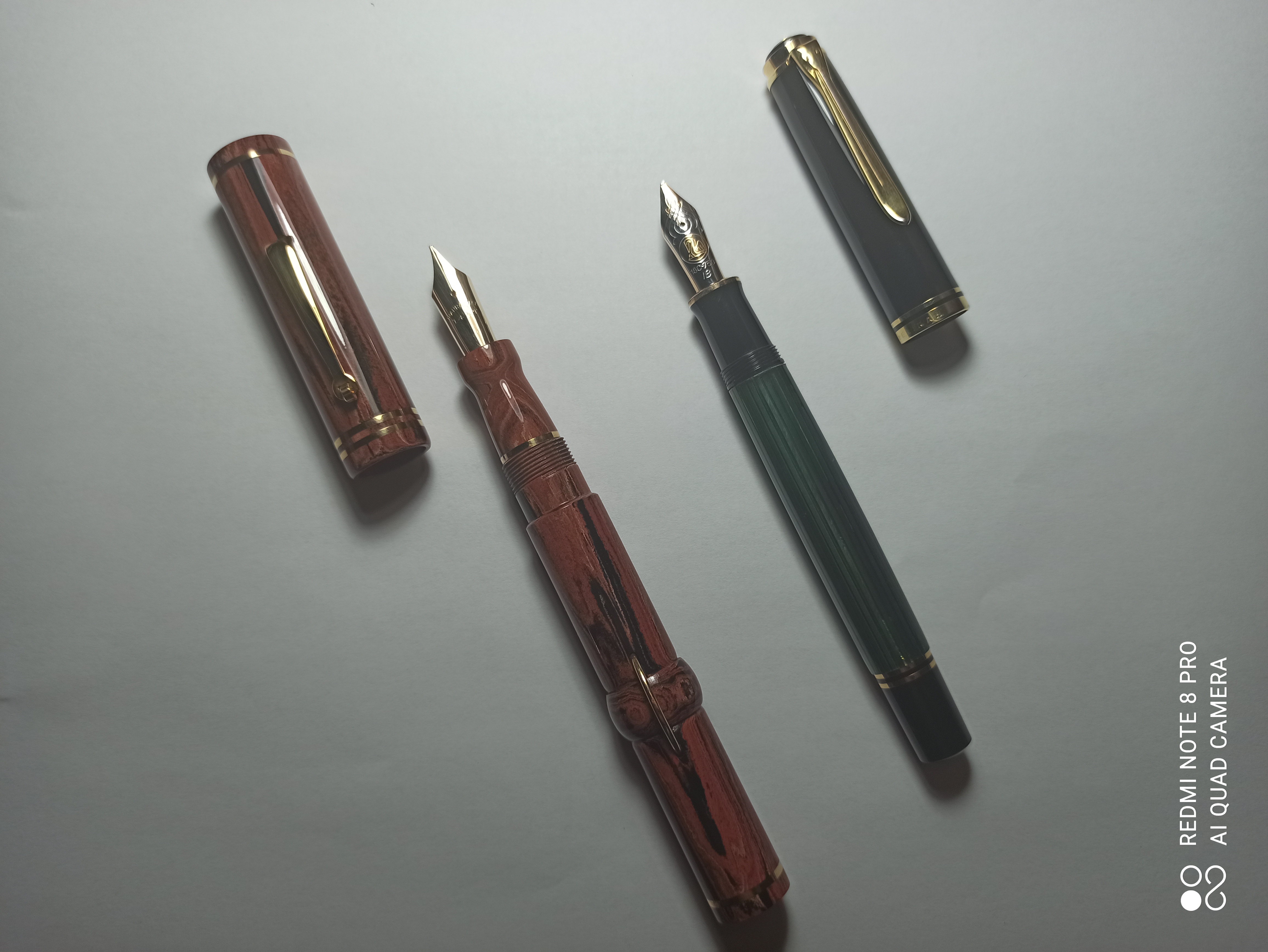 Ho appena finito una crescent filler oversize con pennino n 8 waranted il materiale e ebanite tedesco edizione limitata che si chiama Vesuvio ll in confronto e una Pelikan 800 e una 1000 infine MB baby e waterman 58(purtroppo manchero da Firenze per motivi di lavoro)
